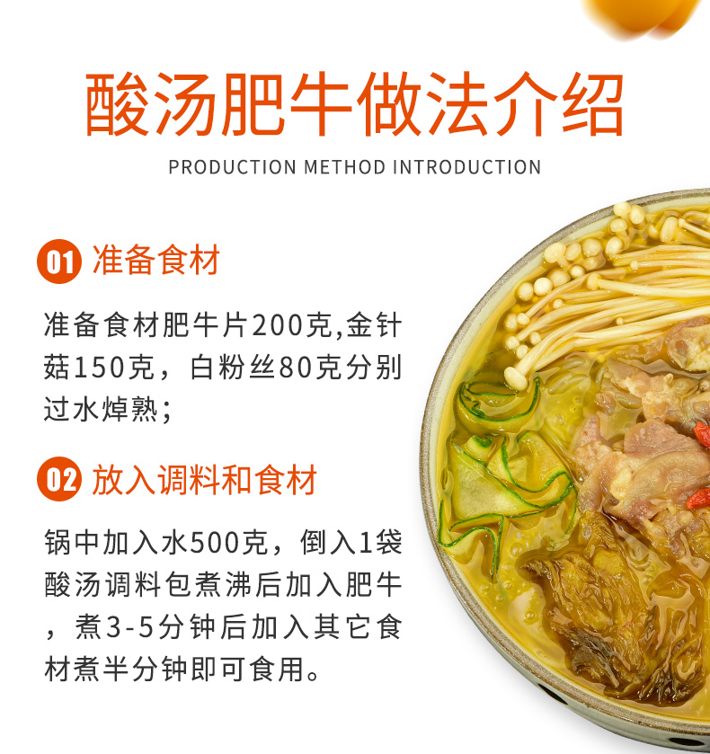 可以喝的上品酸汤,全国数10万家餐饮门店都在使用。优质海南黄灯笼椒,非转基因植物油,真材实料,美味可口,可以做酸汤肥牛,酸汤鱼,酸汤米线等,让厨房小白都能在家轻松做