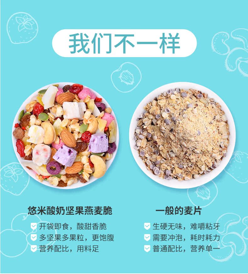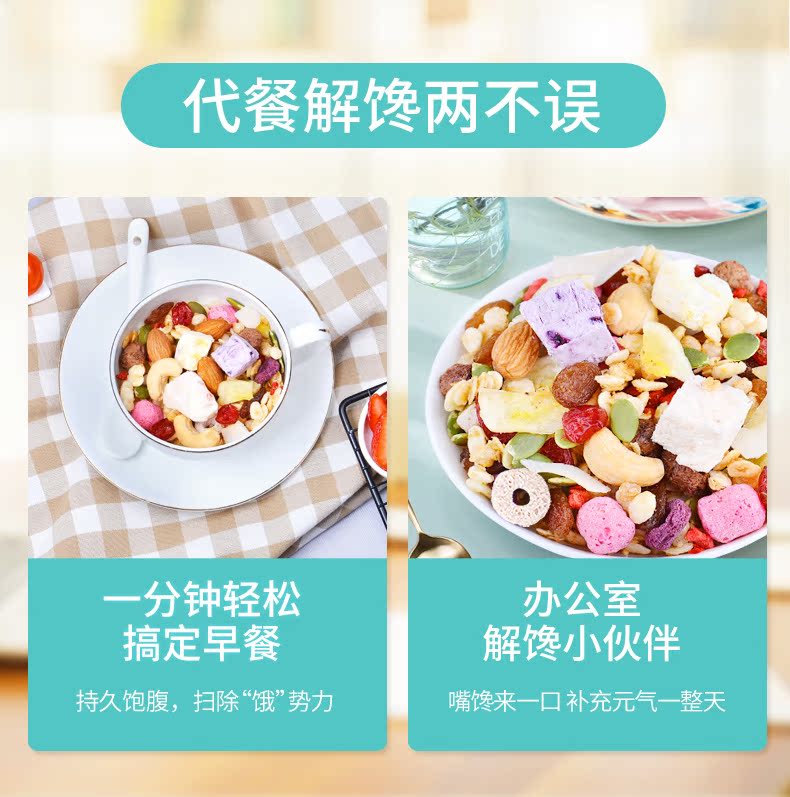 酸奶果粒混合,水果坚果营养即食燕麦片早餐速食,懒人代餐食品可干吃+冲泡非油炸,速食美味早餐。便宜大促销啦,抓紧入手,莫失良机。