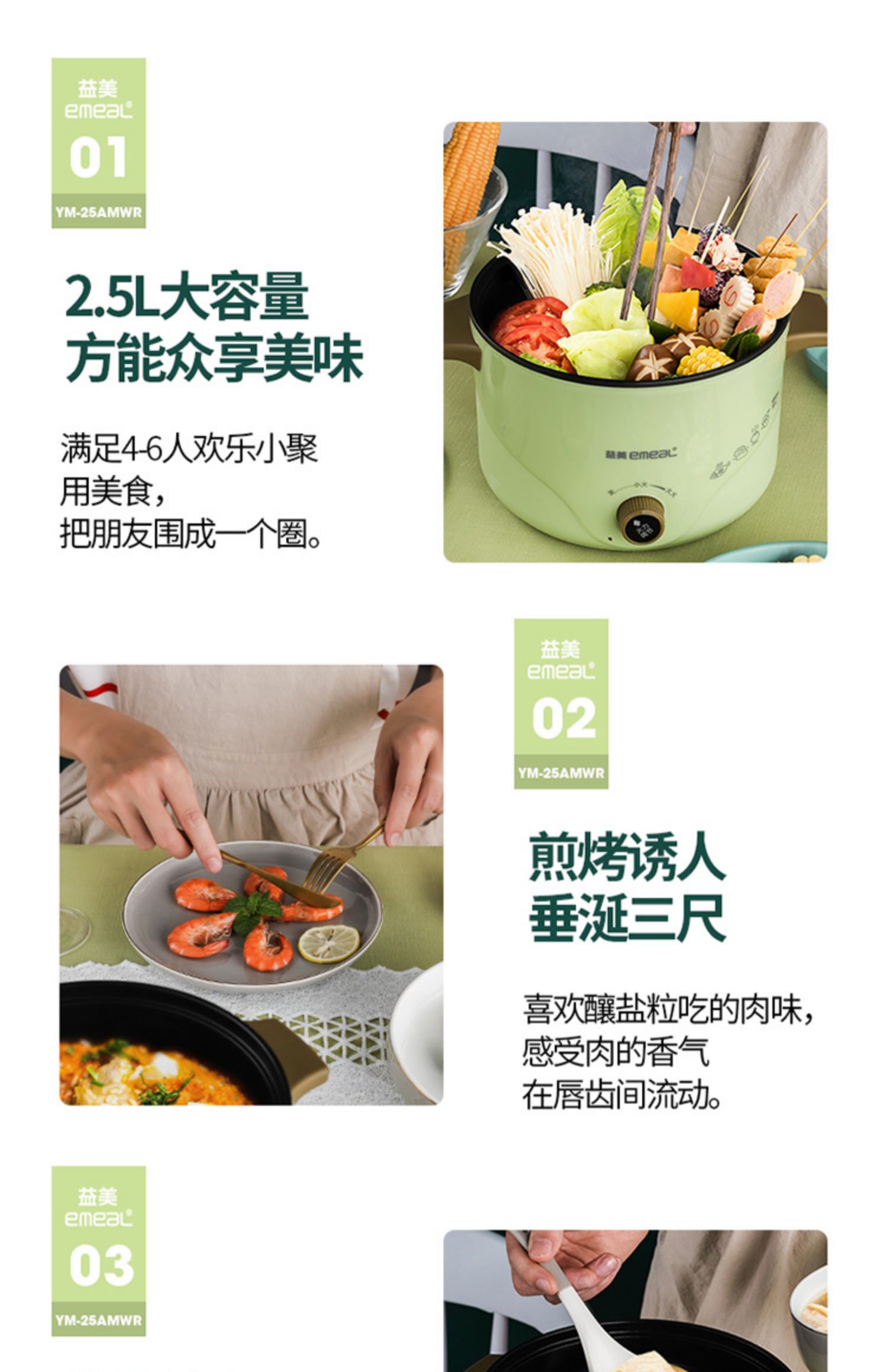 【2.5L大容量+送木铲】牛油果色颜值在线,上蒸下煮,不沾锅体,双重控温,一锅多用单人小火锅,简约时尚多功能煮锅,低功率不跳闸,好材质食品可触,优质不粘涂层,从此吃饭不将就~