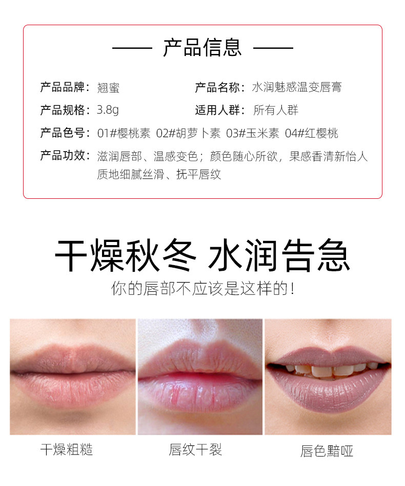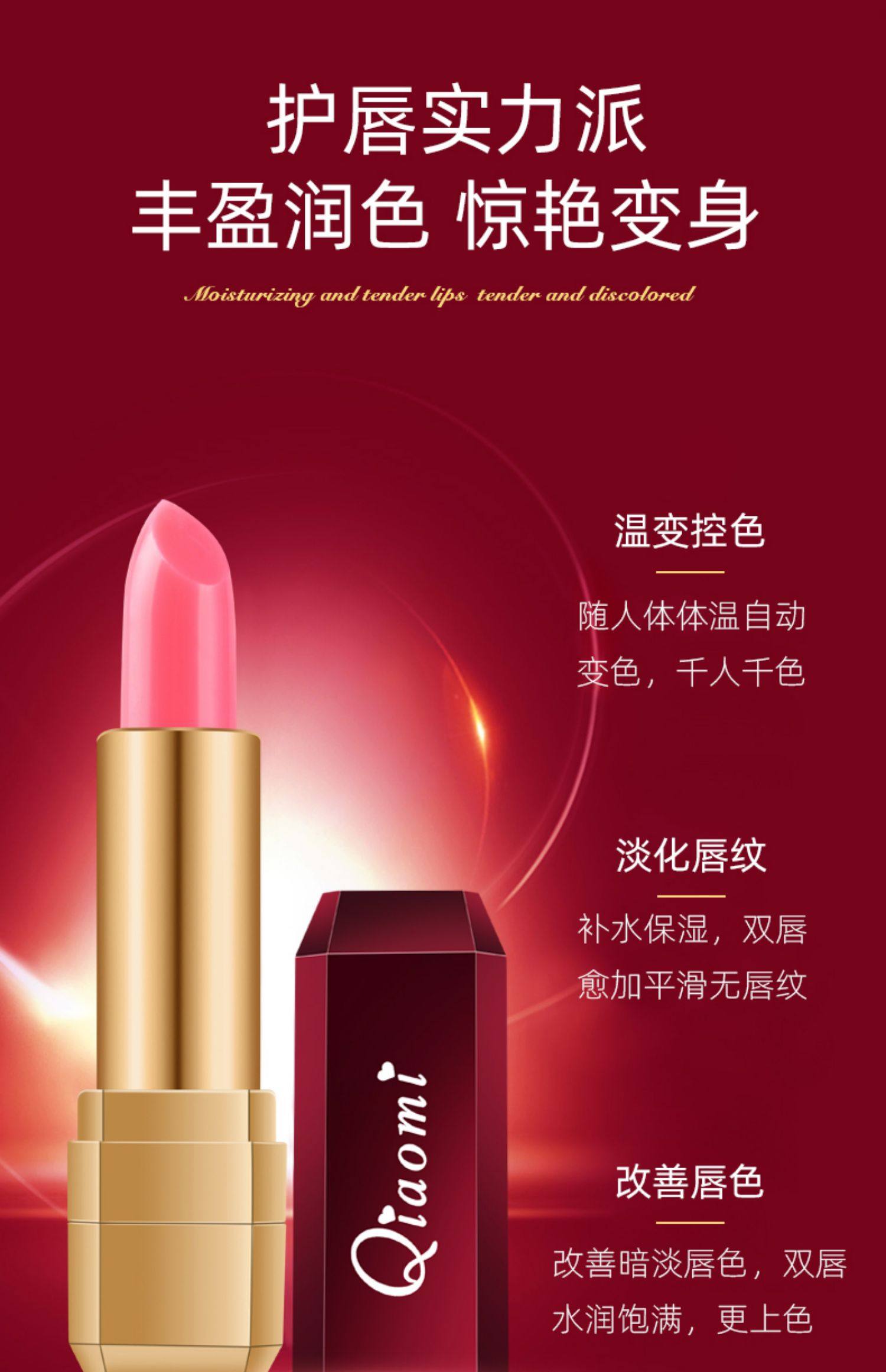 翘蜜千人千色胡萝卜素变色口红,网红爆款,天然有机胡萝卜素变色口红,无香精天然健康原料!孕妇也可以用!滋润保湿,提升好气色,一抹唇色艳丽,让美随心而动!