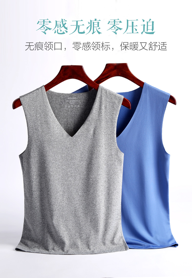 2件男士无痕保暖背心V领加绒加厚发热,精选优质亲肤面料,透气吸汗舒适,轻薄不透,零感无痕,紧身修型。适合各种身材,不起球不变形去静电。多种款色可选,适合多种场合,型男女神秋冬必备【赠运费险】