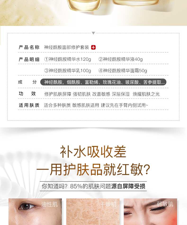 补水黑科技,成分党推荐组合,淡纹抗皱,紧致冻龄,定格年龄,敏感肌救星,修护角质层,提升肌肤抵御力,天然补水,控油保湿,收缩毛孔,紧致去黑头恢复年轻美肌!