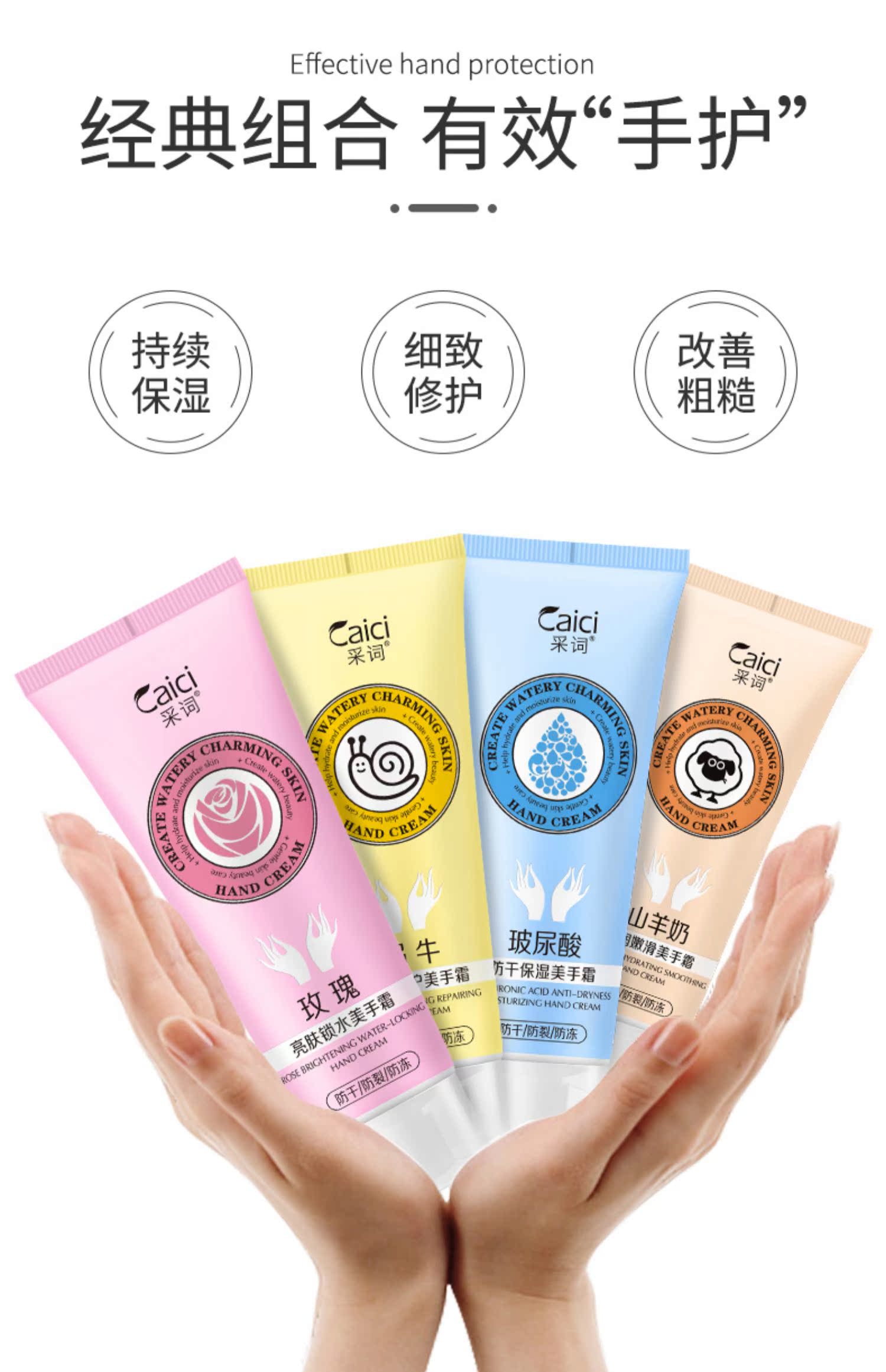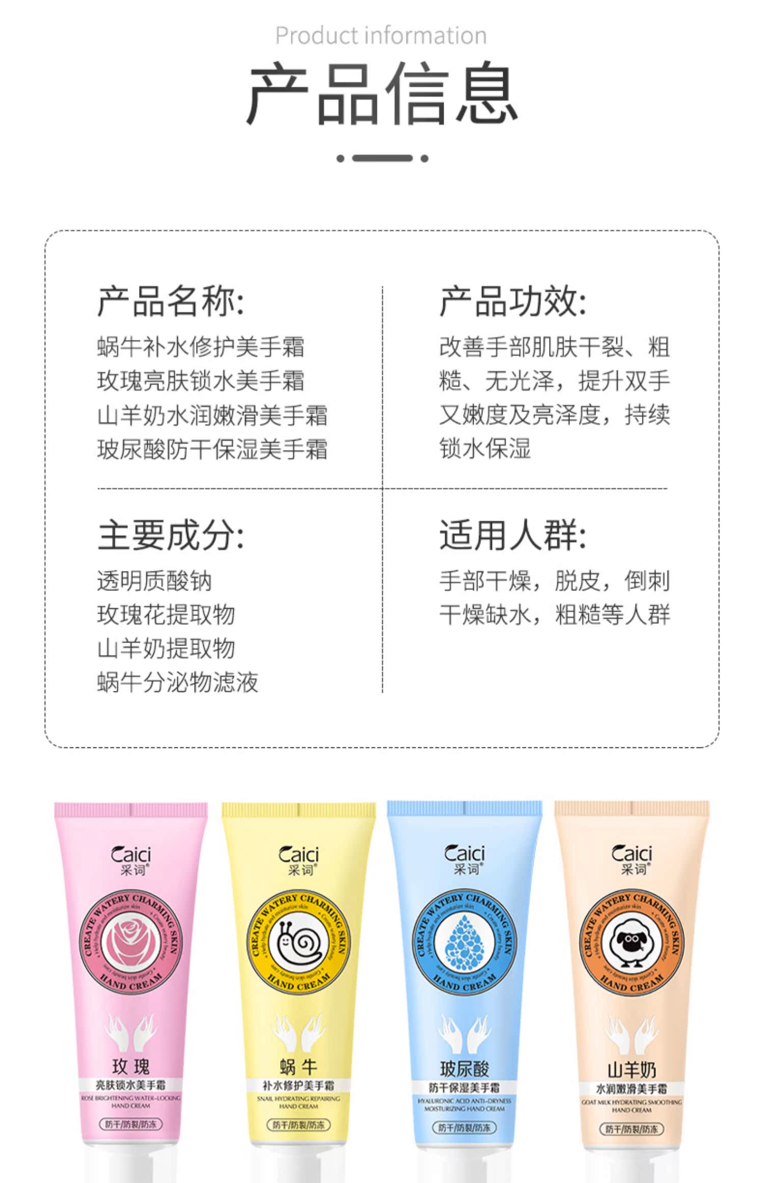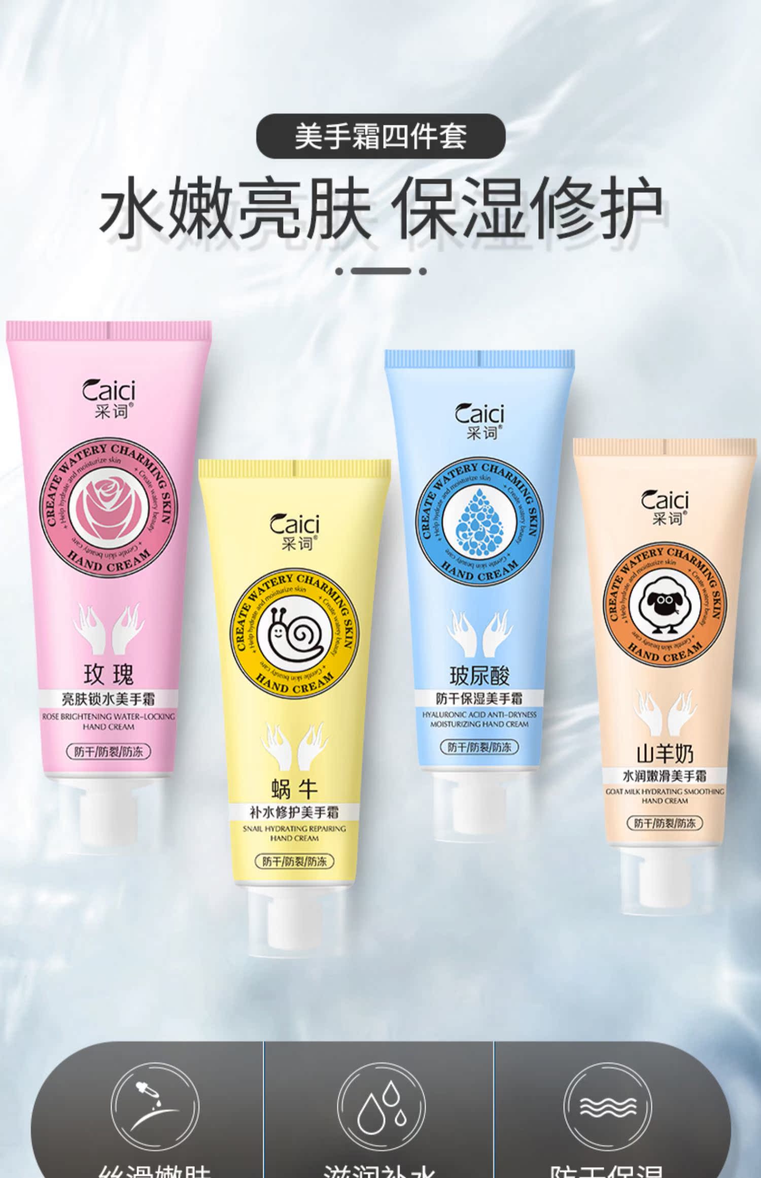 采词4支手霜套装玻尿酸玫瑰山羊蜗牛男女