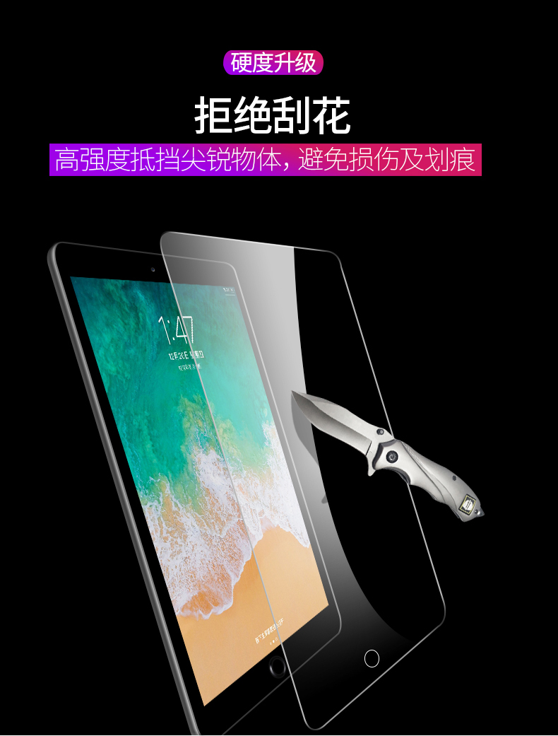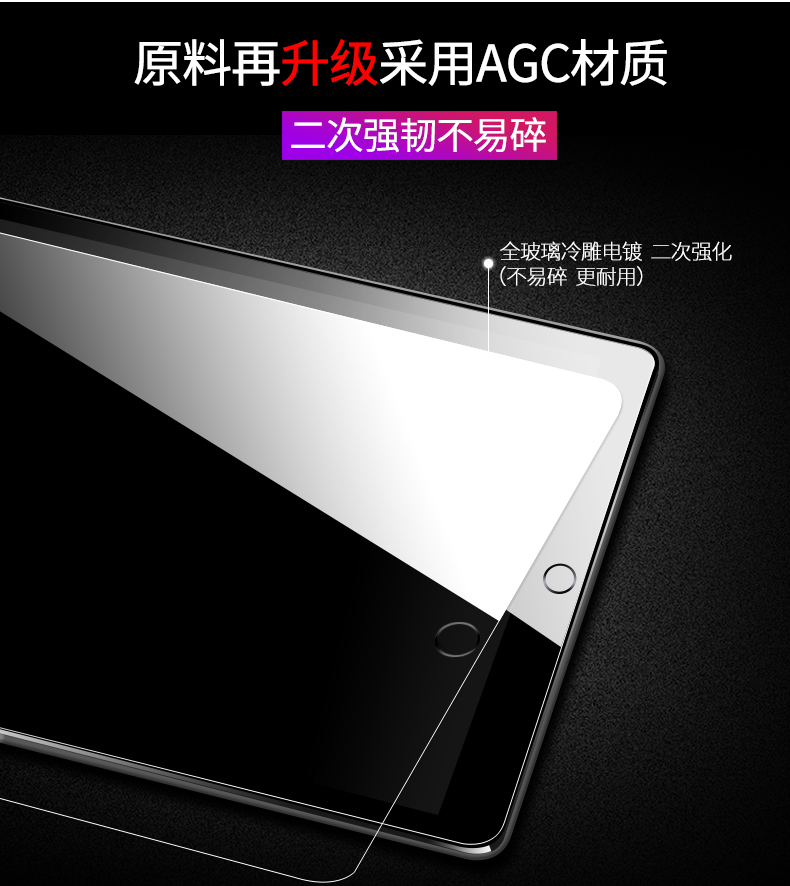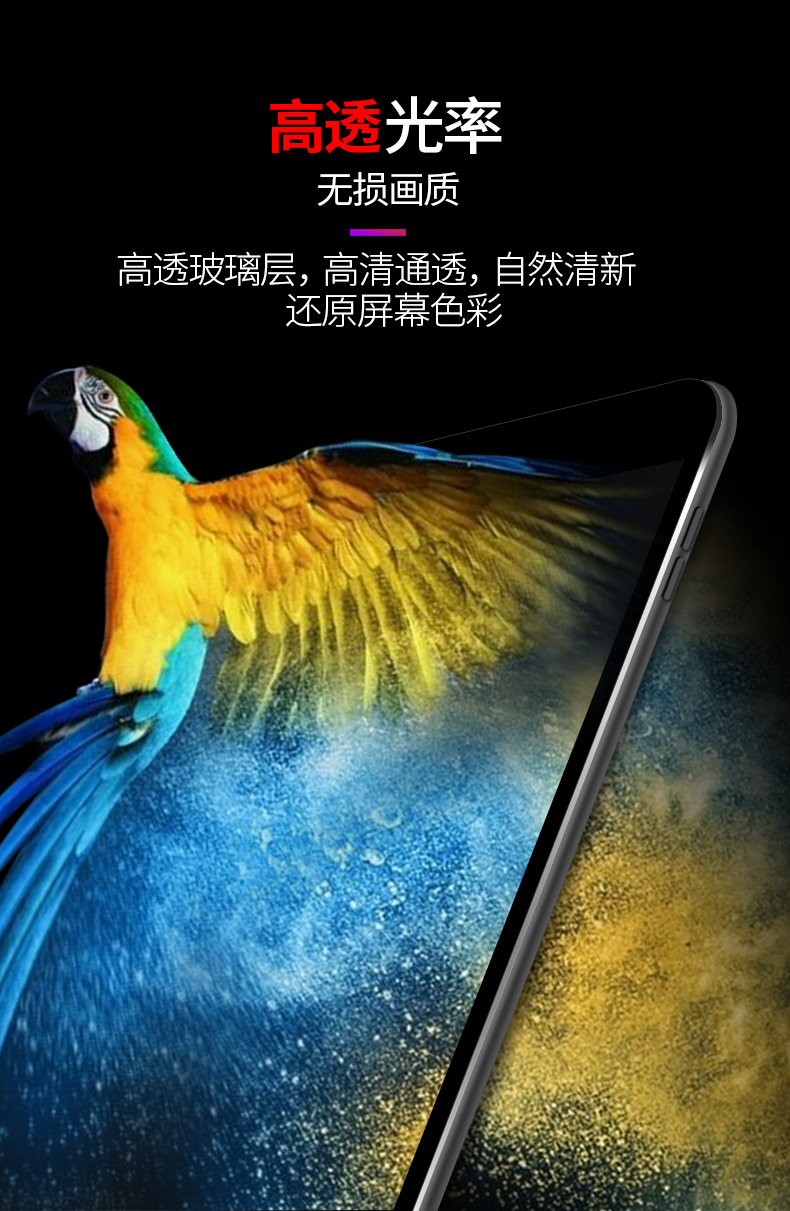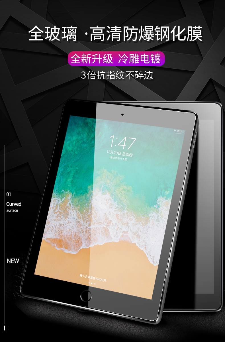 ipad全系列,全新纳米耐刮防爆放指纹,弧边设计全屏覆盖,超薄透光,告别碎边,大小贴合,契合孔位。【赠运费险】