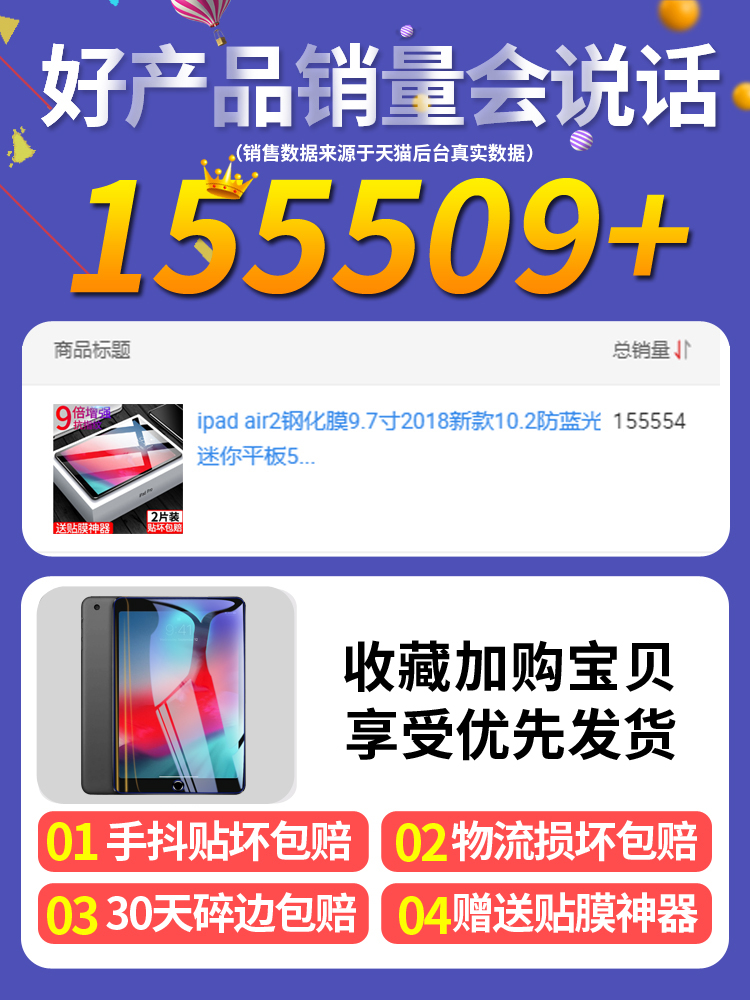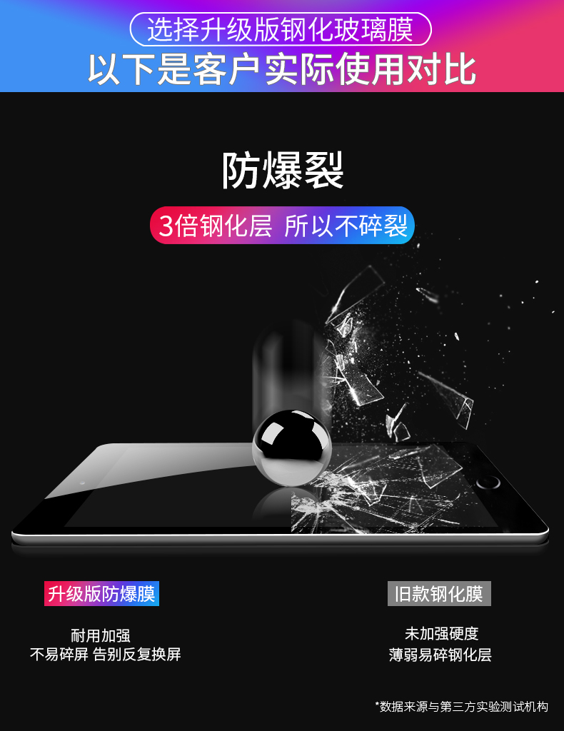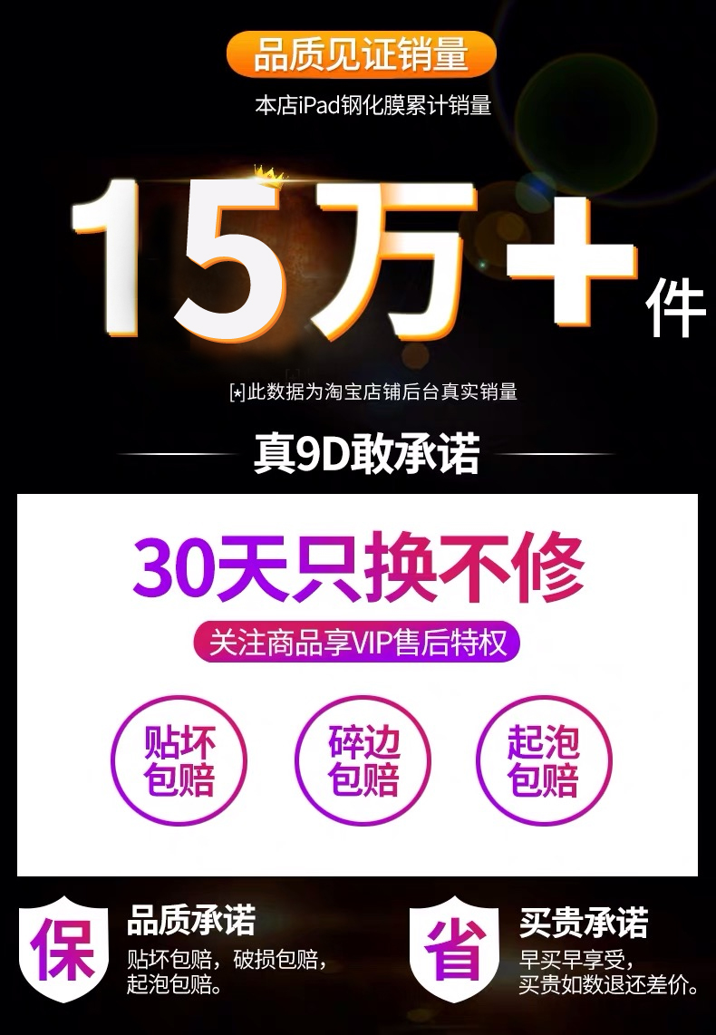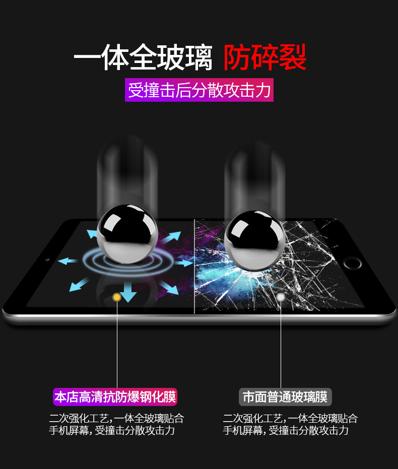 ipad全系列,全新纳米耐刮防爆放指纹,弧边设计全屏覆盖,超薄透光,告别碎边,大小贴合,契合孔位。【赠运费险】