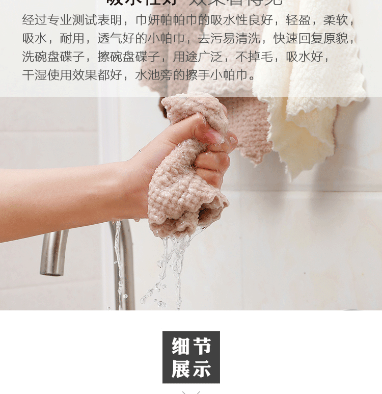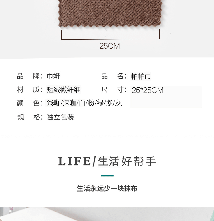 【巾妍】帕帕小方巾,超强吸水,家居生活清洁专家,采用短绒微纤维材质,柔软轻盈,加厚吸水,不易掉毛,易清洗,不易变样,使用省心,透气性好,不易产生异味【7天无理由】