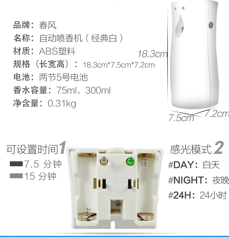 【赠运费险】春风家用自动喷香机+空气清新剂,光线感应,夜间模式,自由定时,自动喷香,LCD液晶屏,触感光滑,防潮防尘,操作简单,经久耐用,多种款式让您自由选择,品质居家生活!