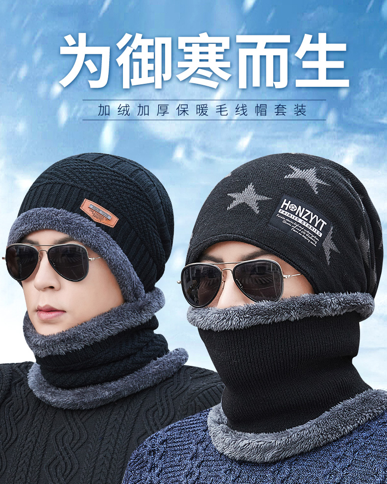 【送手套】冬天男士加厚保暖帽针织帽毛线帽
