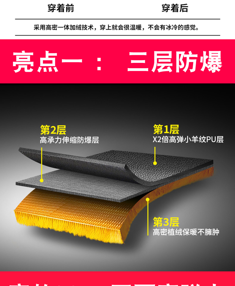高腰加绒保暖,不裂皮,四面高弹力,防寒,抗风,防水,瘦身塑形,性感提臀,柔软舒适,不爆皮,无异味,挺而有型,时尚有范,3D立体裁剪,穿出妖娆身姿~