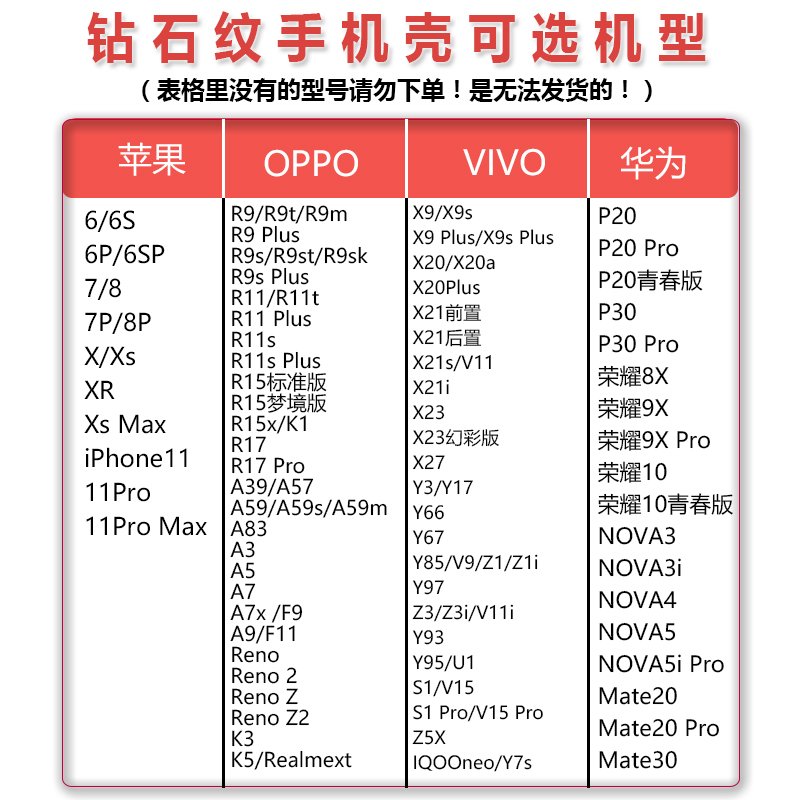 【苹果、华为、OPPO、VIVO多种机型可选!下单留言对应机型~】新年记得给手机换新手机壳~立体钻石纹,手感超级好,拿不稳摔手机?不存在的!过年回家闪瞎小学同学!