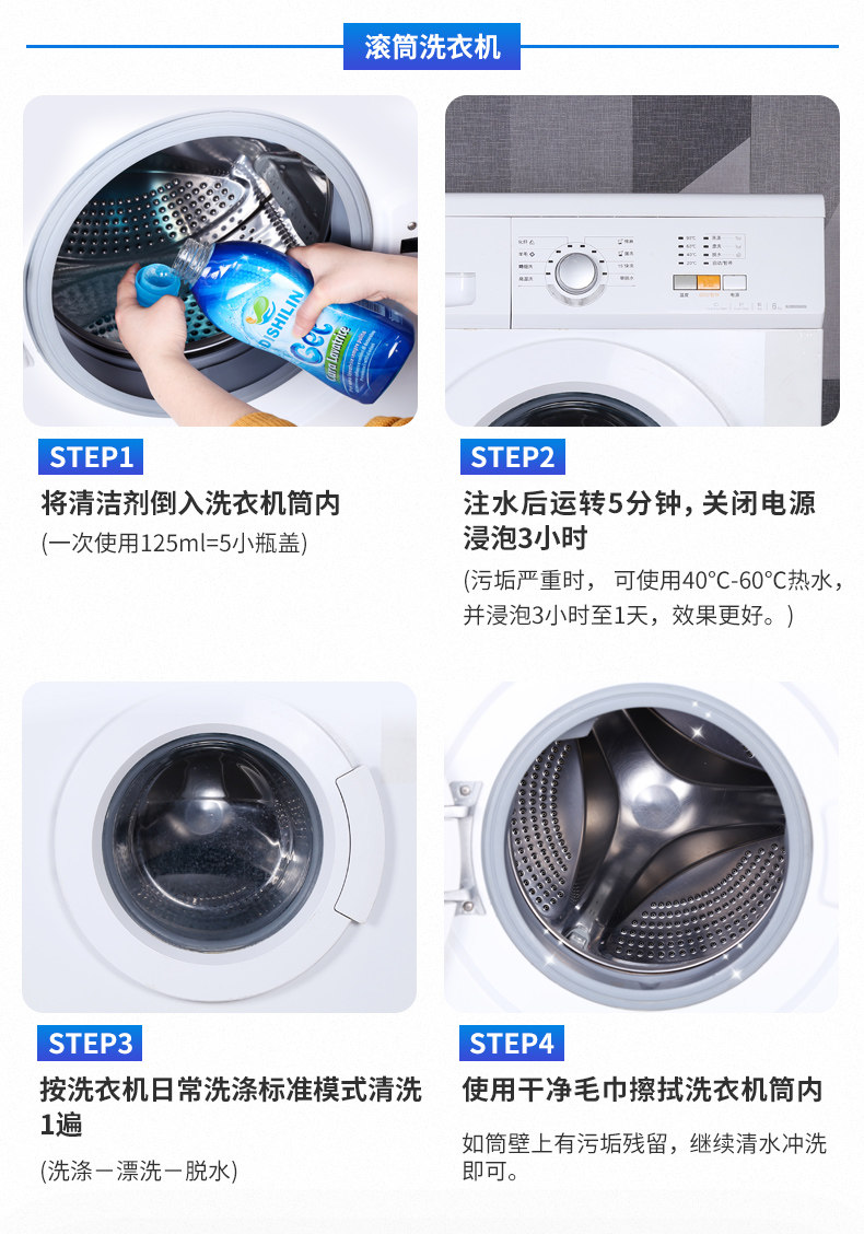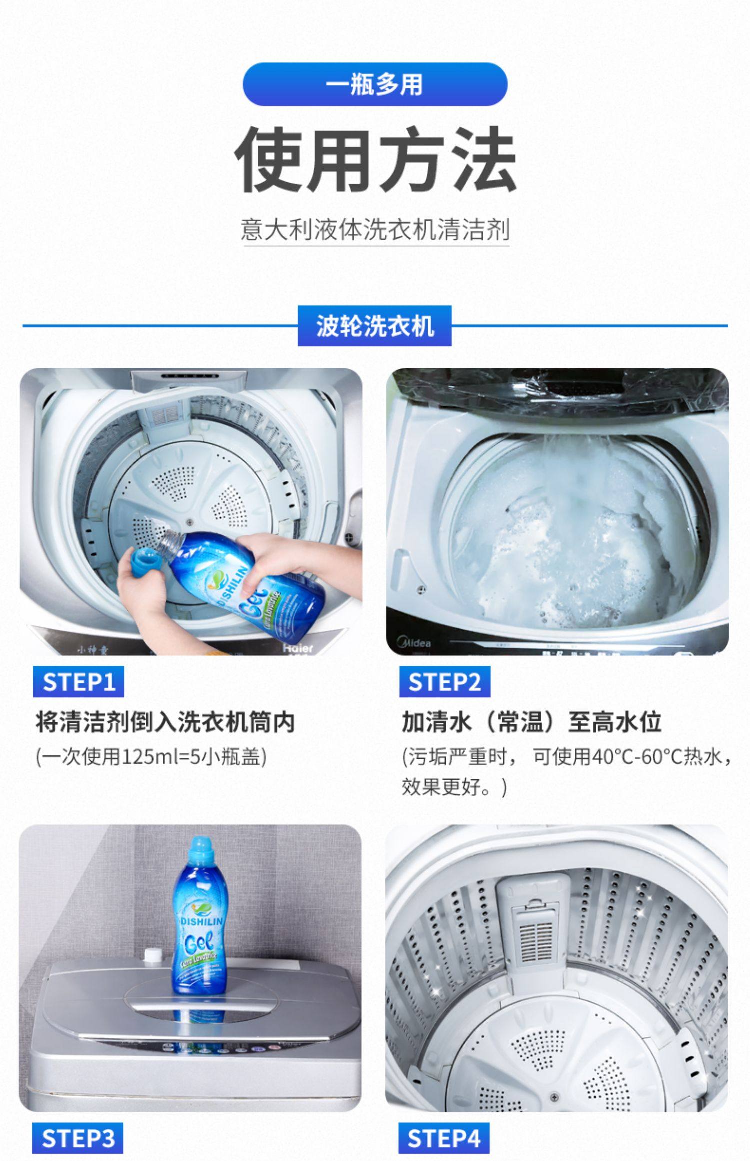 【买二送1】洗衣机液体清洁时代,液体更安全,一年用量,欧洲原装进口,无腐蚀,无残留,易保存,冷热水都可用。适用于所有机型!