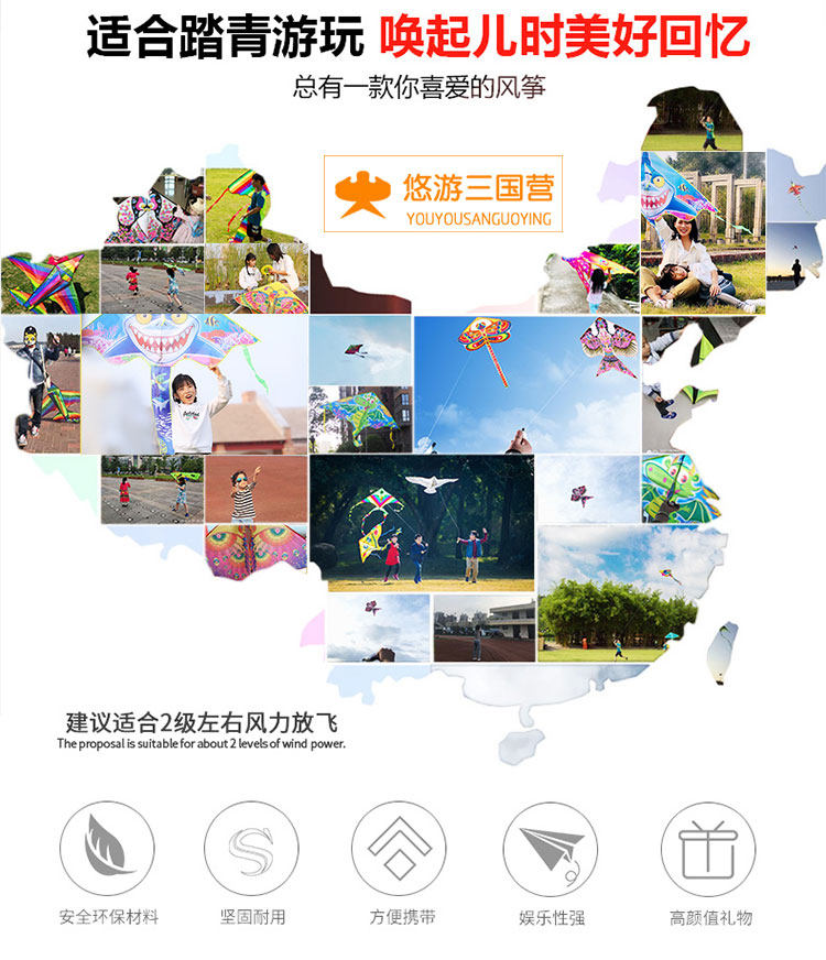 开春大促销,卡通风筝,骨架很牢固,抗撕裂,微风就能放起来,出门踏青,全家都能参与,亲子活动!