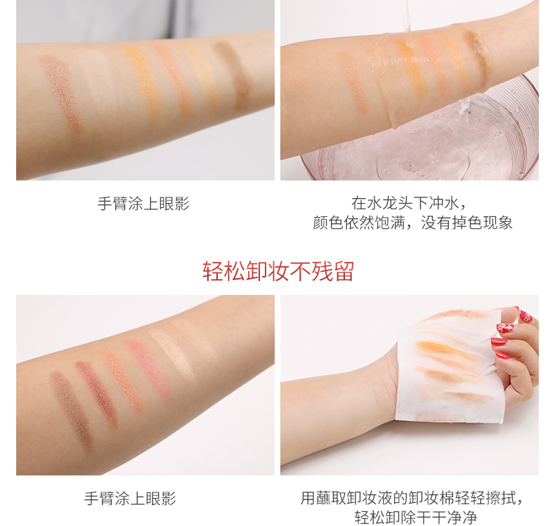 缤纷六色眼影,丰润色彩,着色自然,防水持久不晕染,粉质细腻柔滑易上色,随心打造百变妆容,展现迷人双眼!