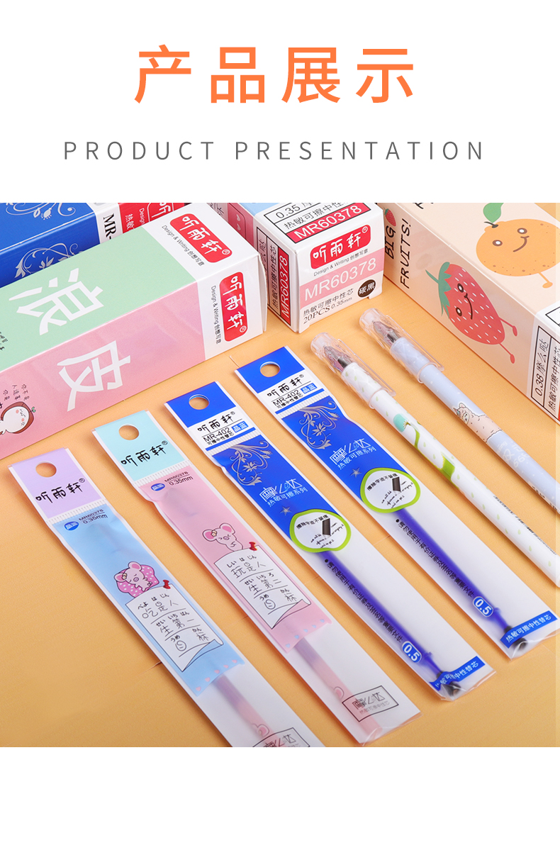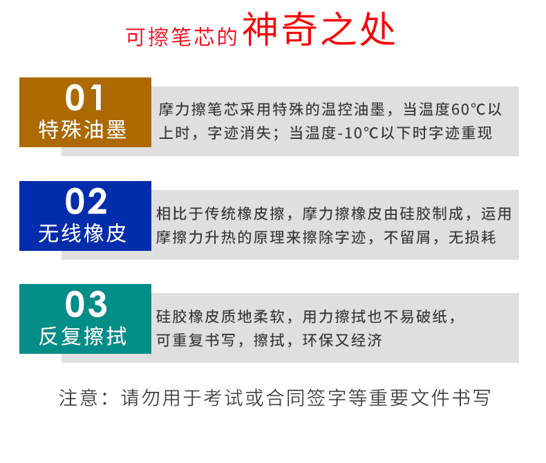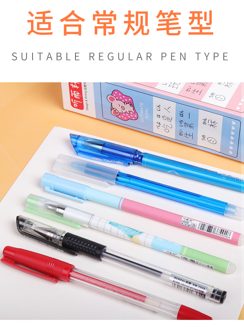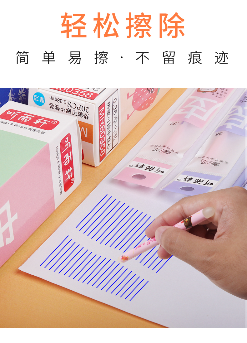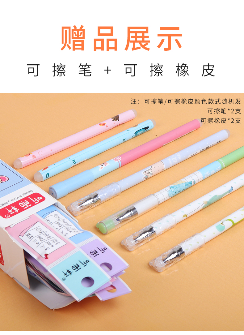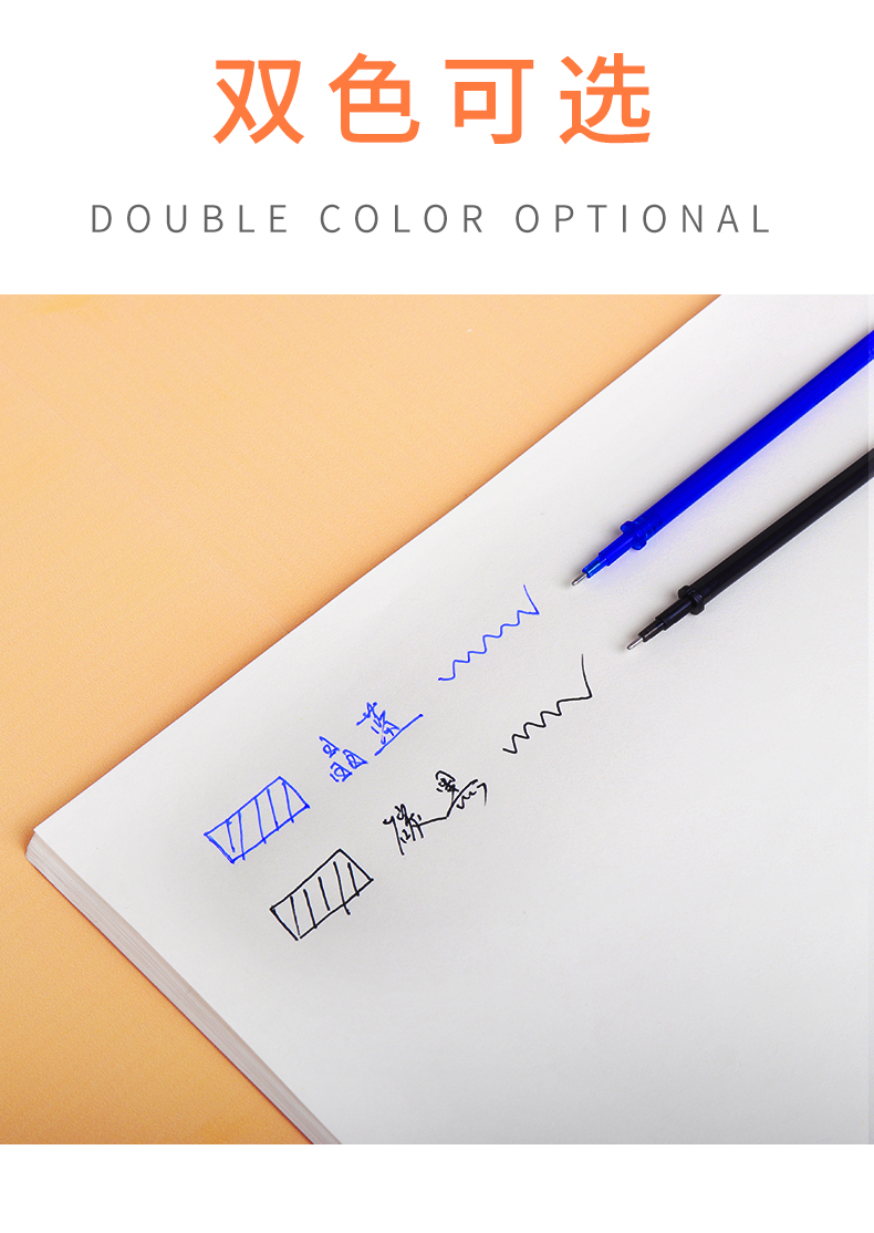 可擦笔芯,全针管笔芯,光滑耐磨抗摔,书写流畅,不卡纸,油墨均匀,不易褪色,颜色饱和度高,写出的字迹清晰,易擦拭,书写不费力。