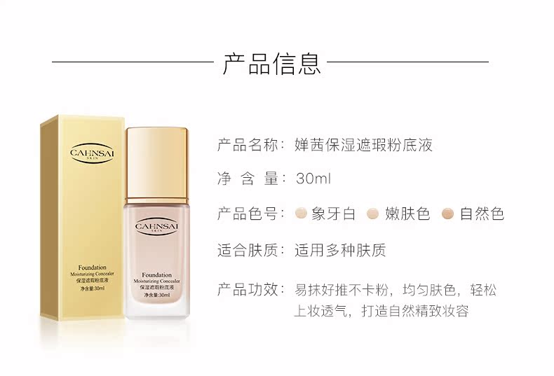 【全国包邮】【赠运费险】屈臣氏1瓶129,我们活动2瓶只要28!CAHNSAI粉底液!水润质地不粘腻,一抹轻松遮盖皮肤瑕疵,打造自然精致妆容!还是防水的款,下水游泳也能稳稳hold住!