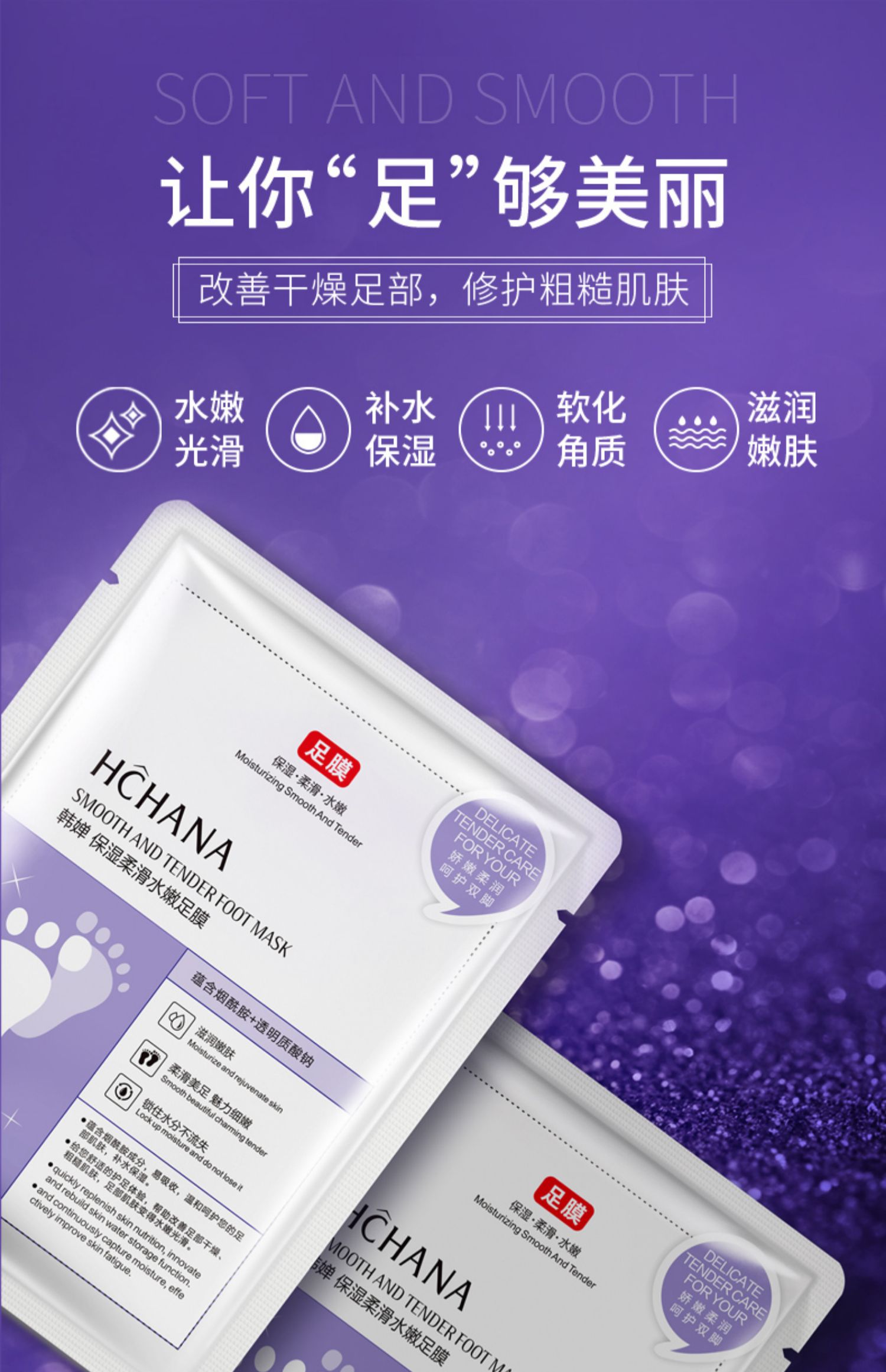【拍5件!第2-5件0元】去死皮去老茧,改善足部粗糙,光滑嫩白双脚,嫩脚不伤肤,脚后跟防干裂,美足嫩白脱皮脚膜固,提高果酸对老茧的分解速度,先蜕皮后养足,还你嫩嫩小脚丫。旗舰店更值得信赖!
