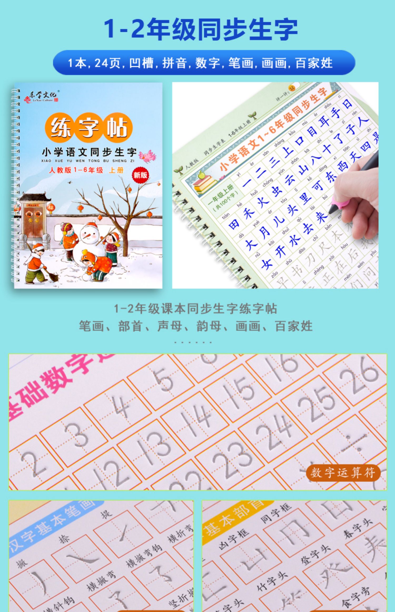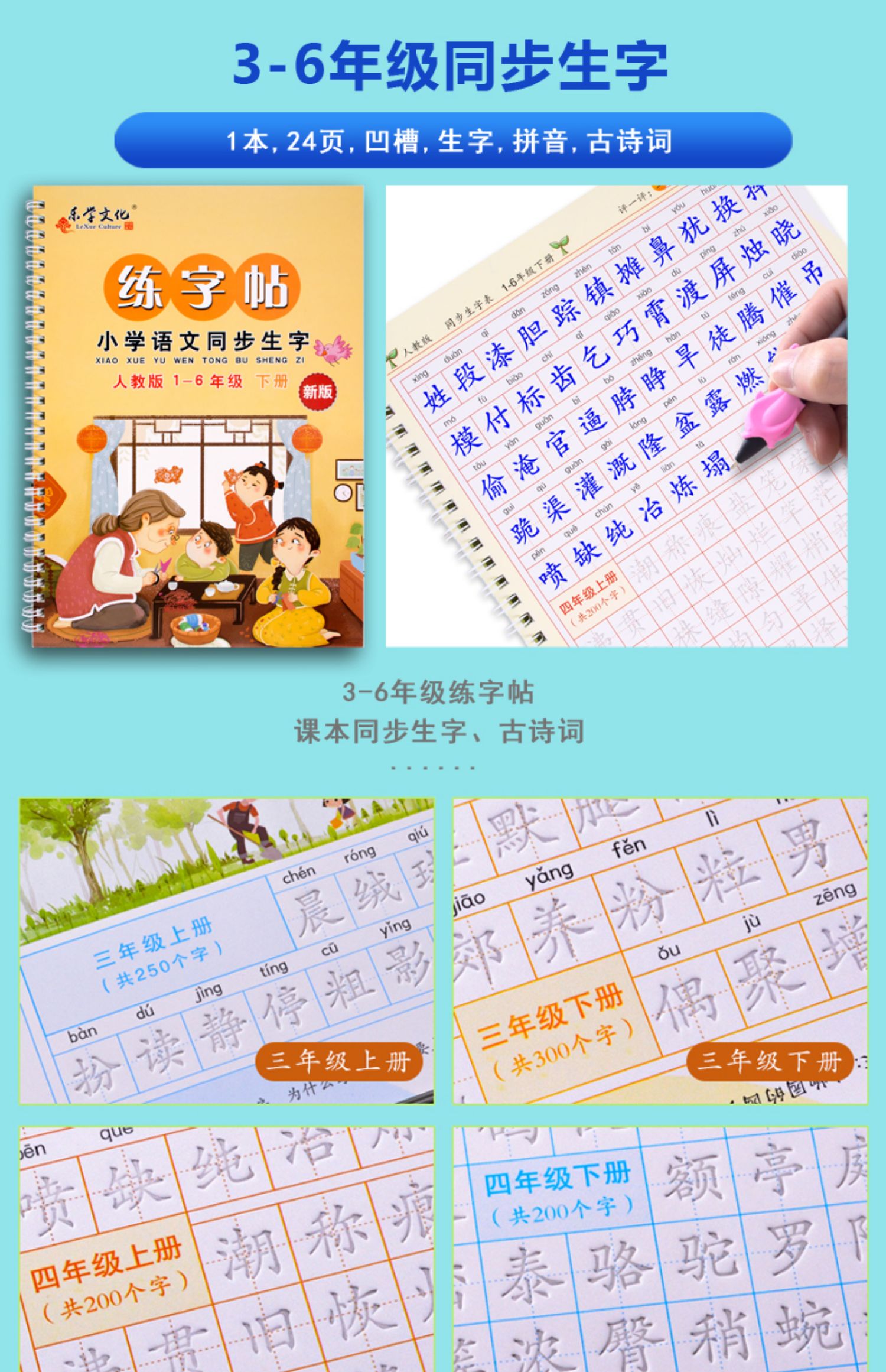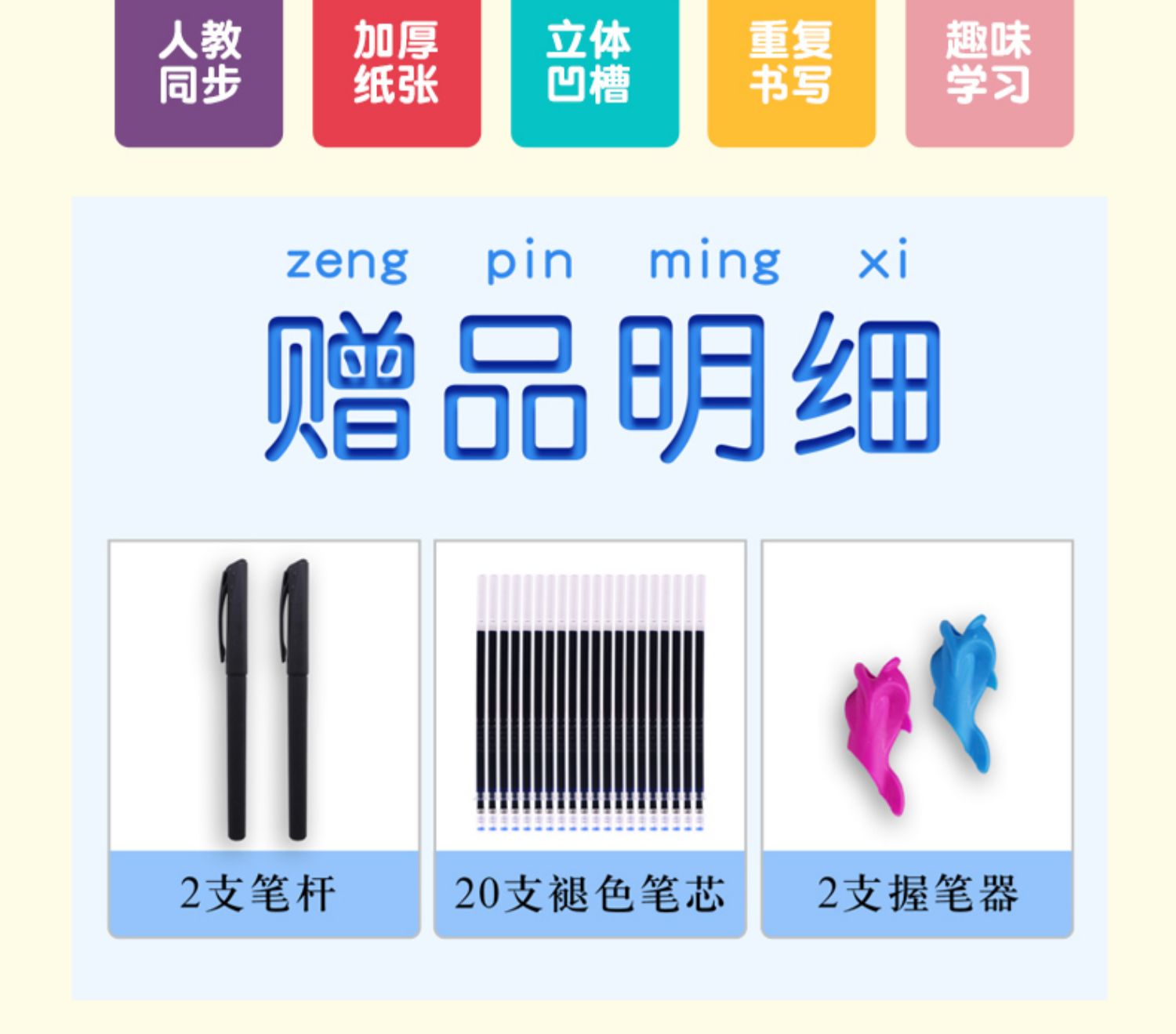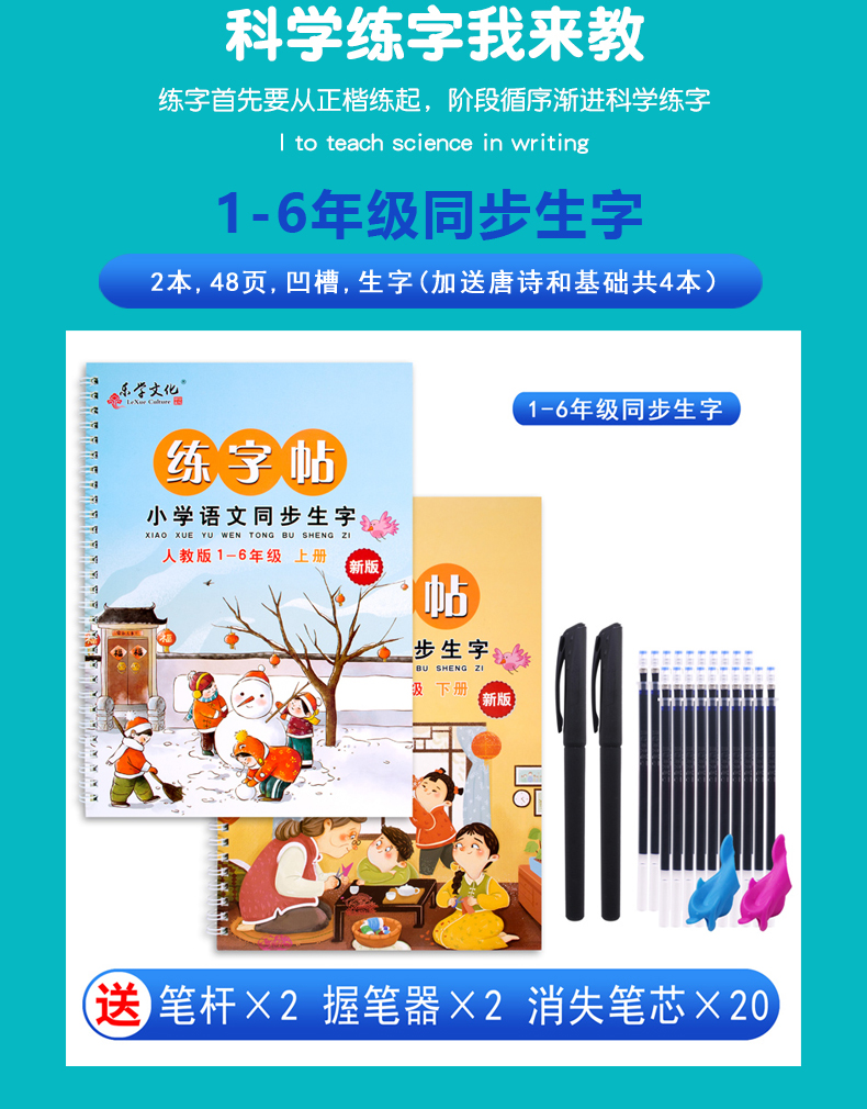 【买就送20支笔芯+2只笔杆+2个握笔器】同步人教版,纸张质量超级好,厚实无异味,字体规范,均是楷文,印刷字迹非常清晰,每天几页,让孩子从小练就一手好字!学生必备的练字神器,赶紧囤!【赠运费险】