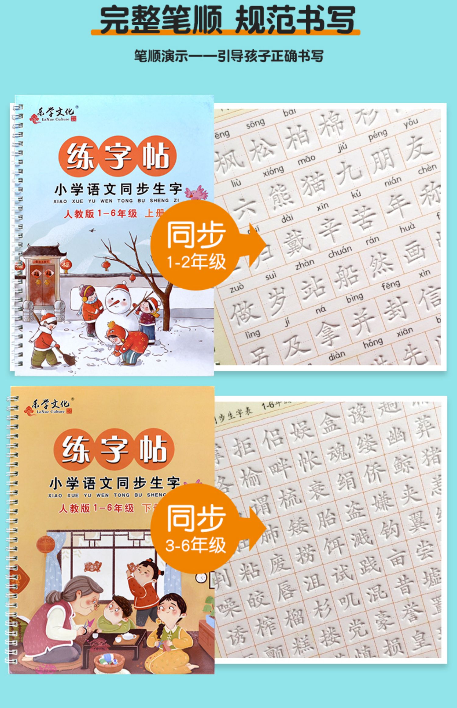 小学生1-6年级人教版凹槽练字帖