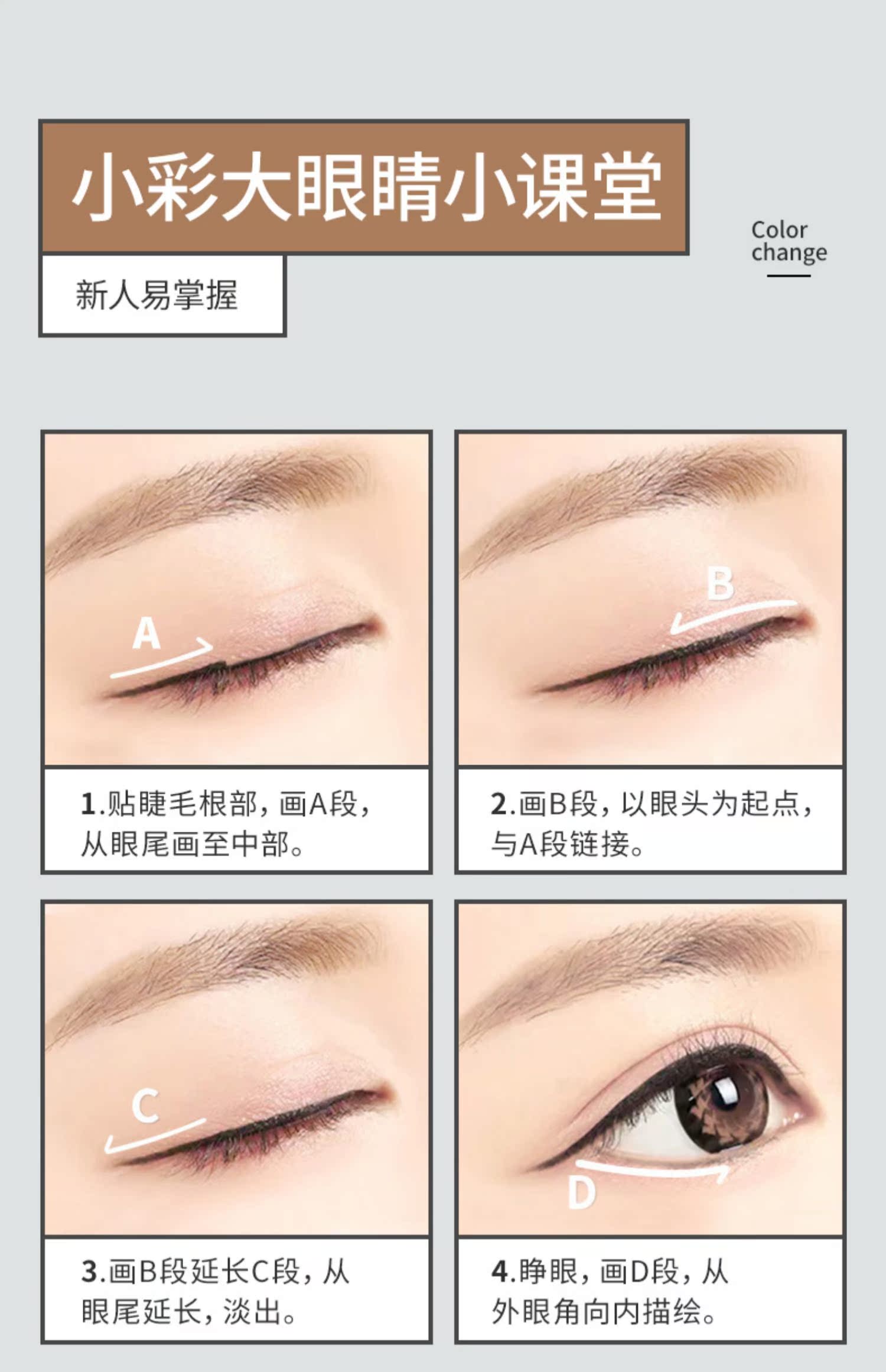 一笔画出电眼,一整天不晕妆,24小时揉搓不怕熊猫眼,0.01毫米极细笔尖,描绘更均匀更流畅,新手MM也能一笔成型,轻轻一笔,get完美大眼美妆~!