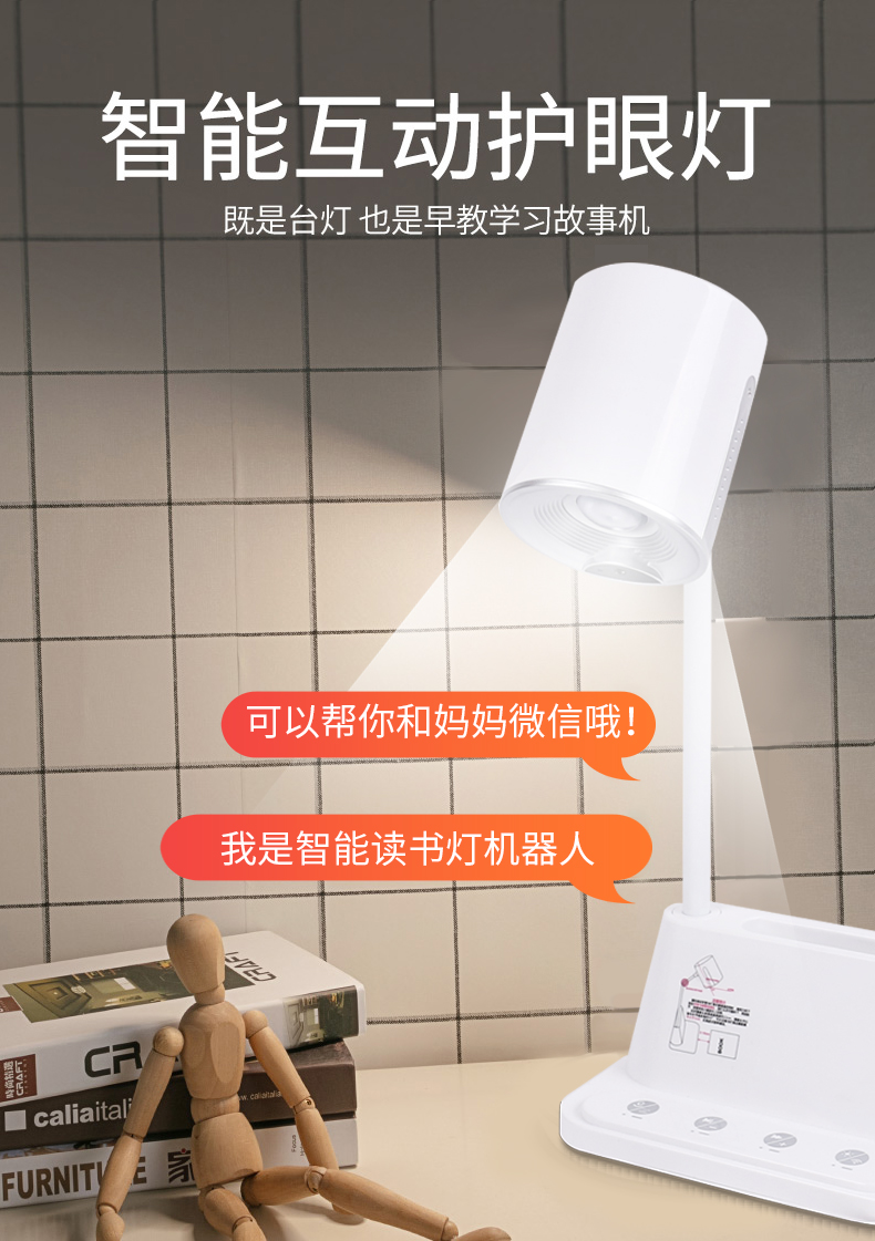 【智能互动护眼灯】不只是台灯,读课文+AI机器人+护眼台灯,智能朗读台灯,让孩子读出来。简约外观,高能表现,无辐射,【赠运费险】