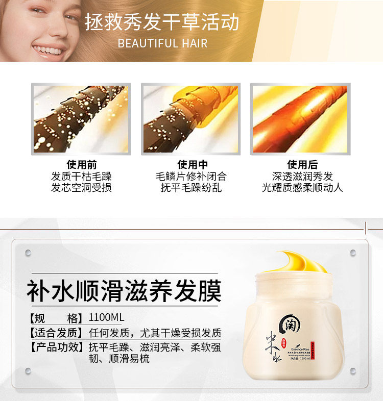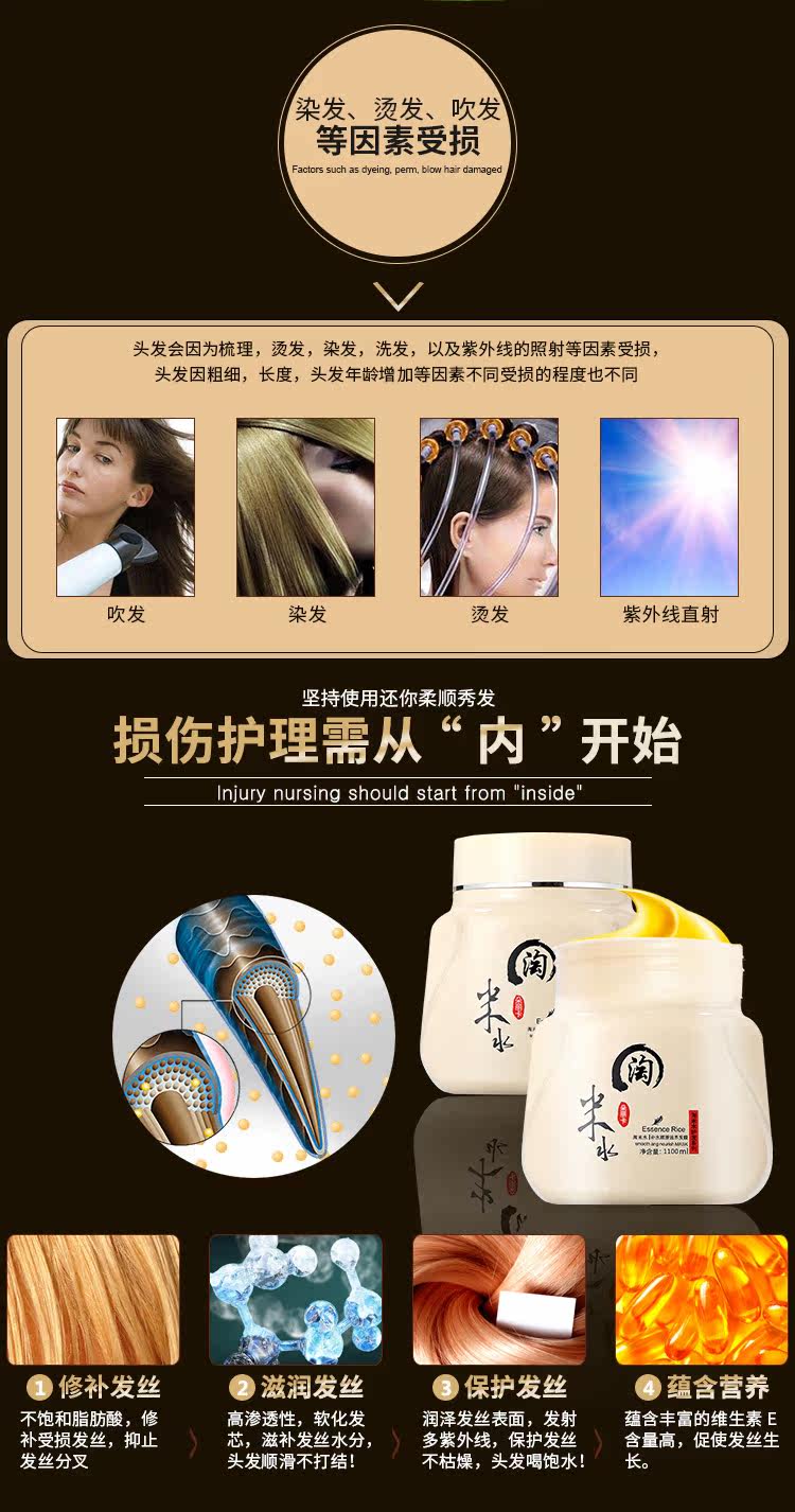 朵丽卡淘米水护发素,发膜,水疗营养,深层修复受损,古方养发,胚芽精纯提取物,无化学无色素无刺激,精华滋养,改善毛躁,强韧防断发,染烫受损护,重现秀发年轻光彩!【赠运费险】