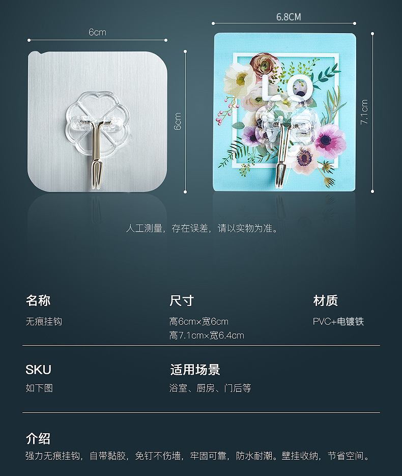 【超值10个装!】免打孔无痕挂钩,惊人的承重能力,挂置无忧一钩多用!小巧便捷,强力吸附,防水防潮,实用不损墙面,还可重复使用,居家必备神器!