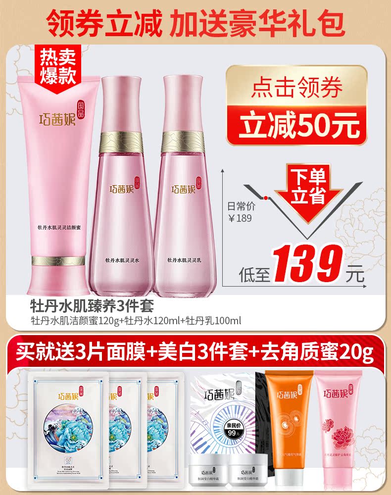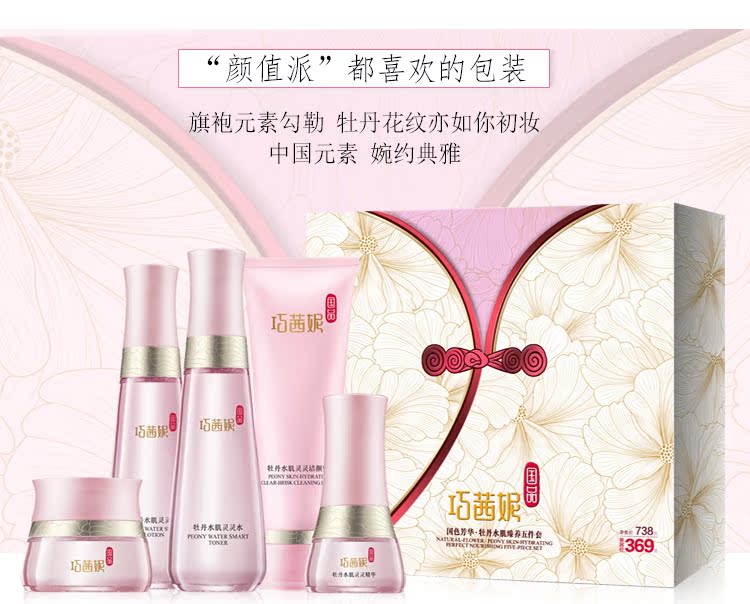 【巧茜妮】国品牡丹臻养护肤五件套,取天地植物之精华,草本成分,国花牡丹养肌成分,温和有效,肌肤水嫩全靠养!由明星安以轩代言