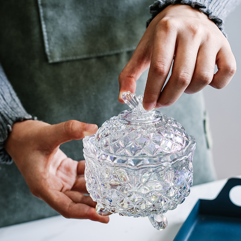 【买一送一】欧式精品玻璃方糖罐,电镀工艺,刀切不变色,盛糖块,化妆棉,盛棉签,牙签,首饰收纳,装坚果,美观大气,高端时尚【送运费险】