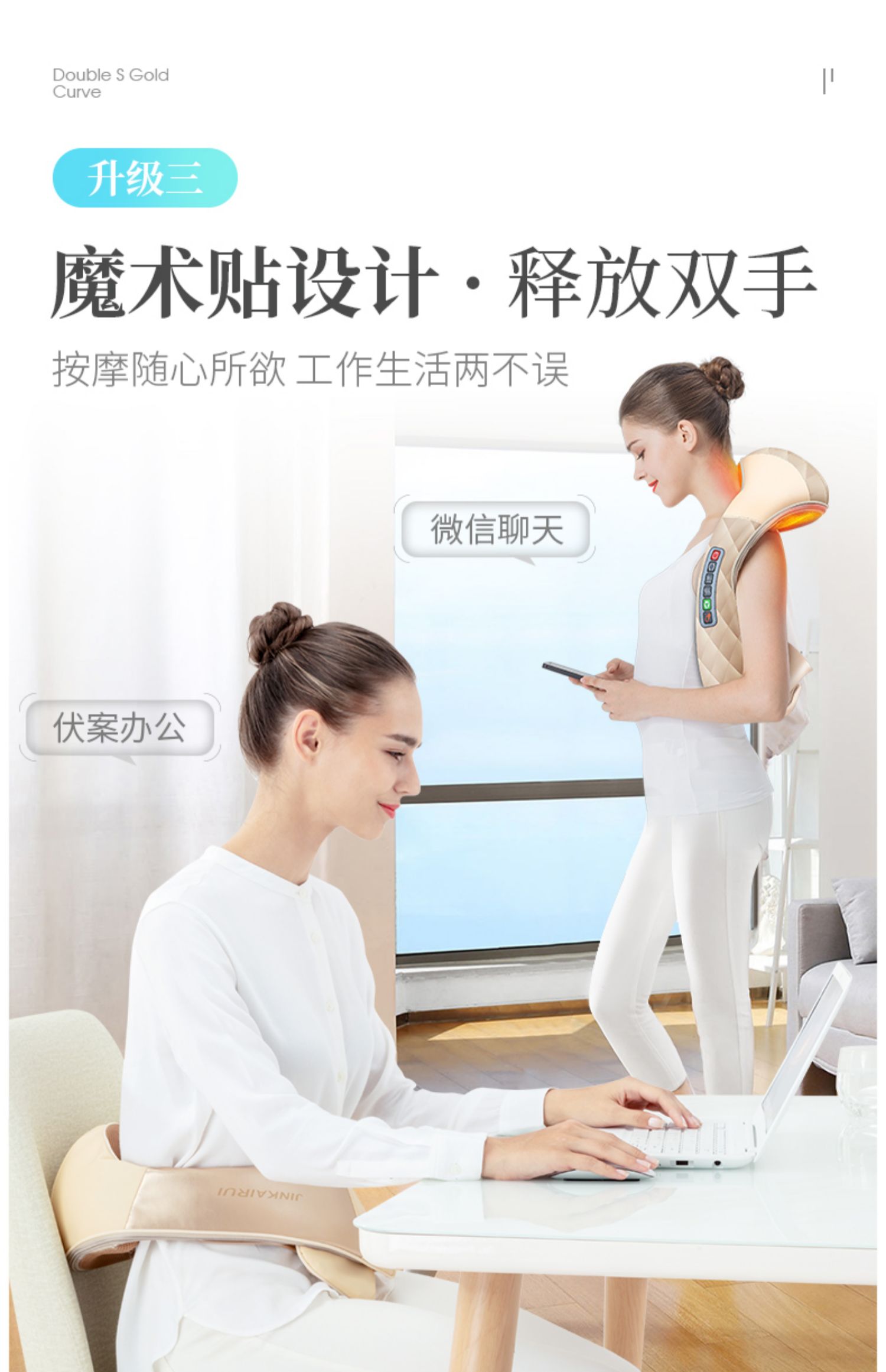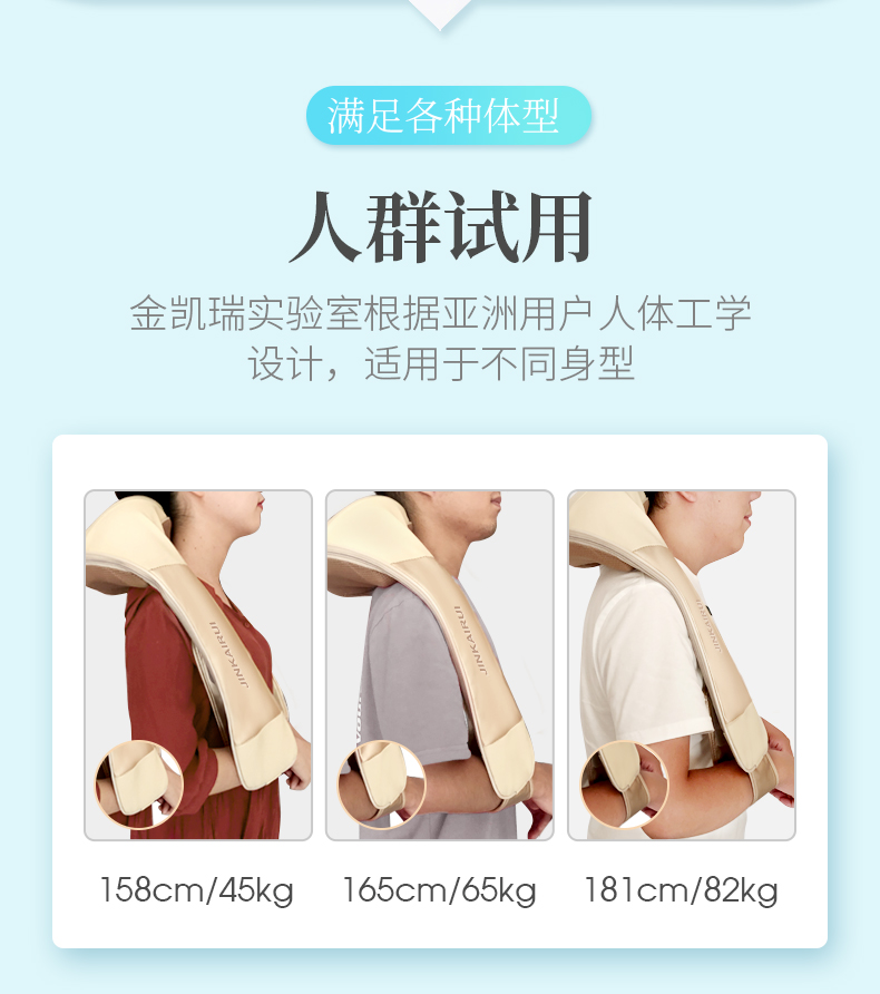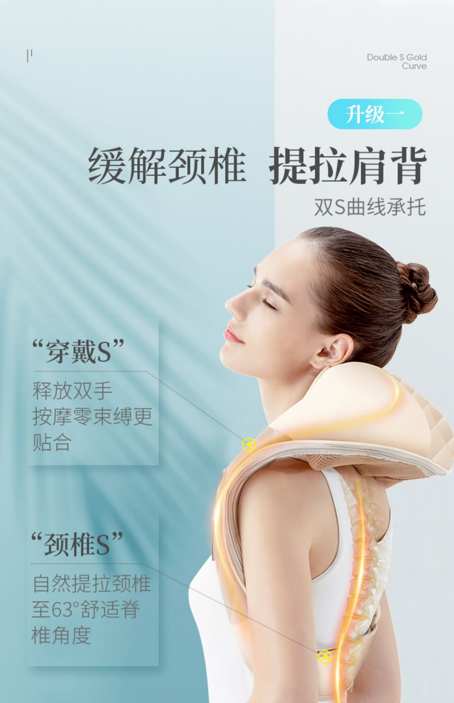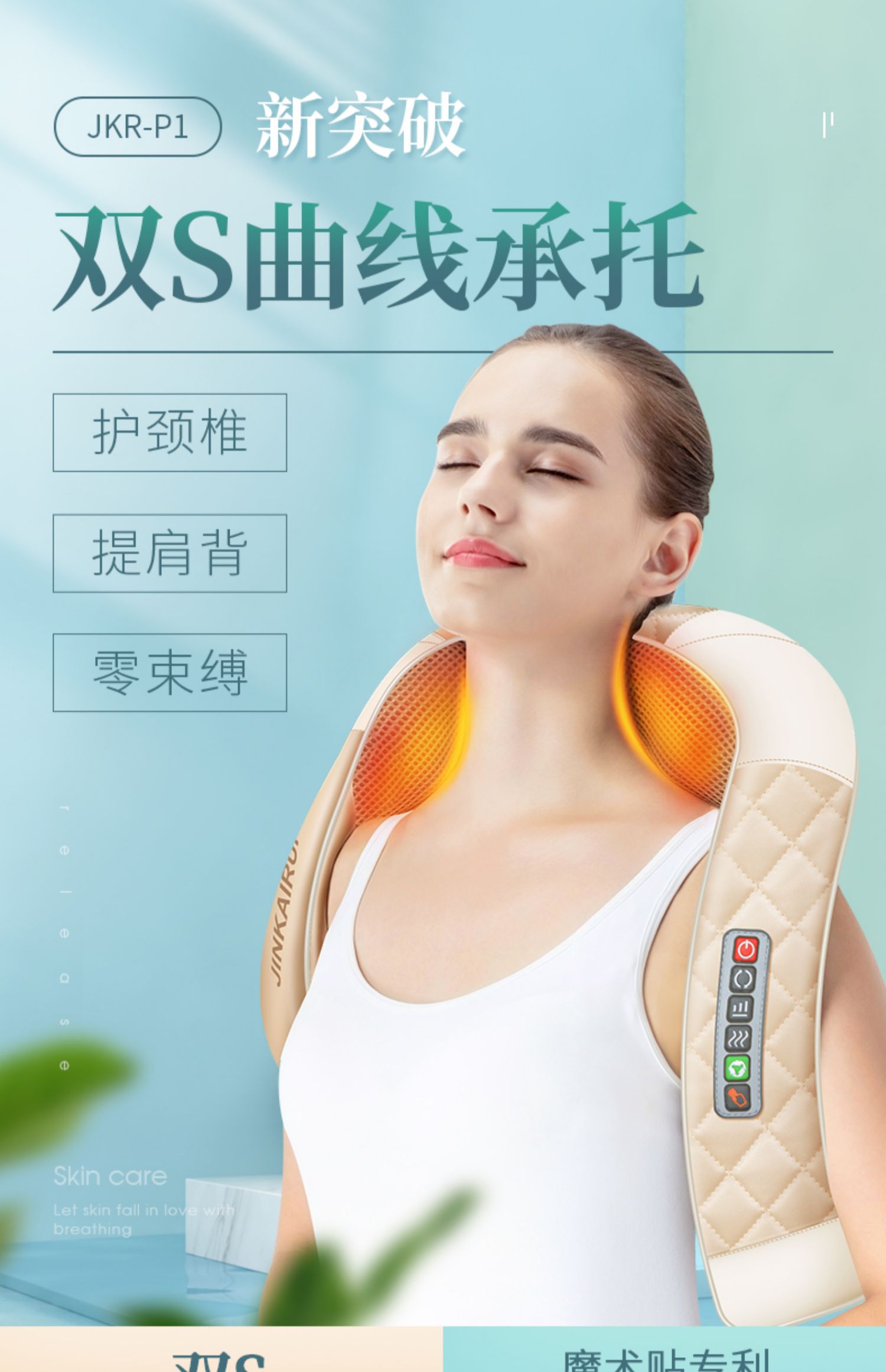 按摩披肩的外观特别的有档次!耐用的皮革面料,柔软透气,有了它真的是解放了双手,真人手法,舒适自然,腰、颈、腿、肩全身可用!累了一天放松放松真的是舒服了,可以满足一个家庭对按摩仪的期待呐~