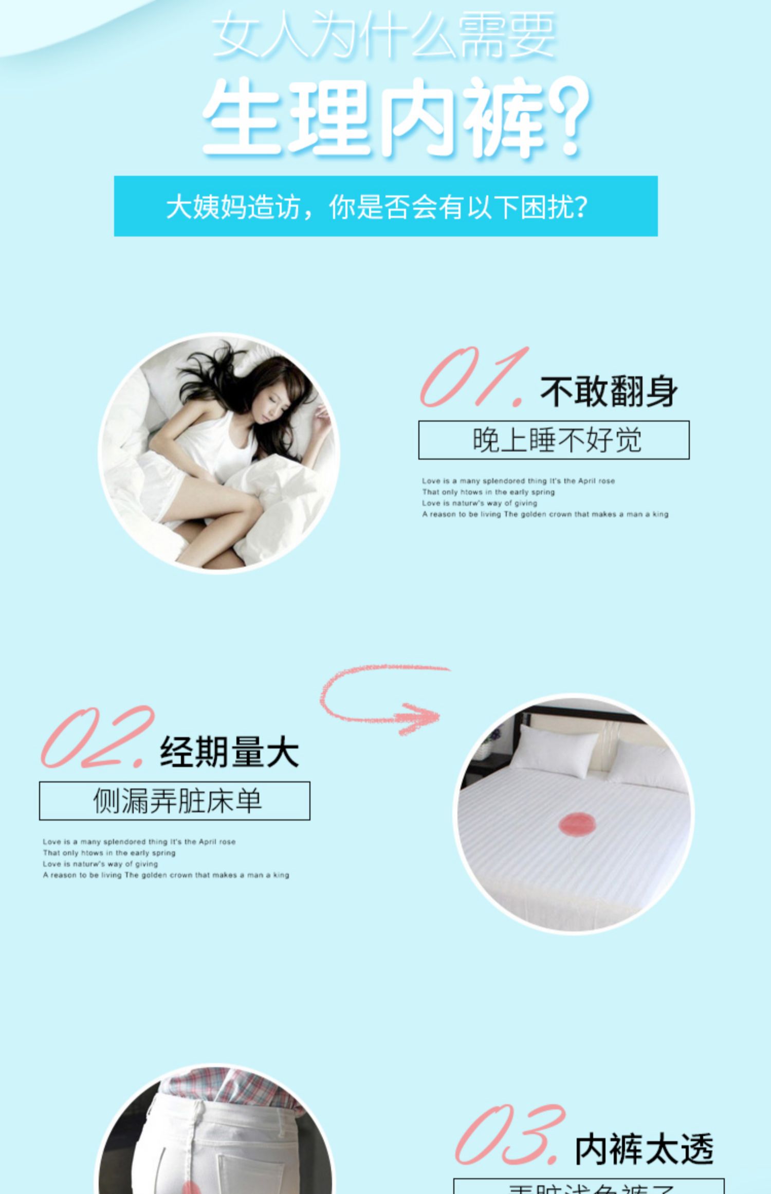 精选天然棉花,高腰暖宫,经期防漏生理内裤,柔软舒适,透气易清洗,三层防漏面料,腰部不紧绷,无勒痕,经期专属设计,安全一整夜,给你更安心的保护!让您经期不再烦恼!!!【赠运费险】