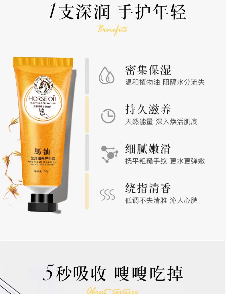 秋冬必备!马油手足霜,让你无惧干燥~精萃马油,柔嫩手足,质地温和,润而不腻,早晚涂抹,让肌肤喝饱营养!厚涂还可做手足膜,足足50g*5支!!