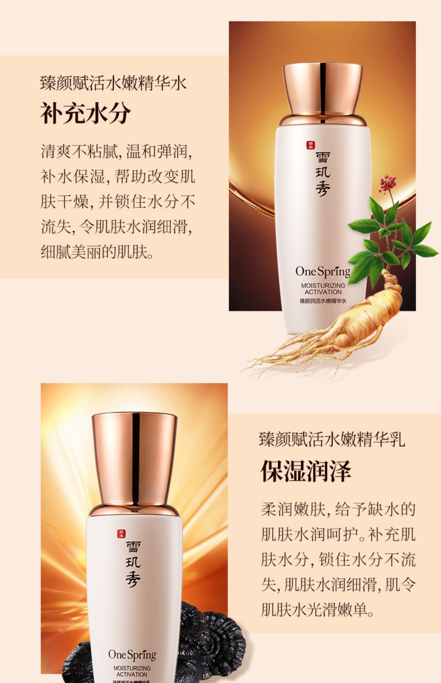 清爽洁净、补充水分、保湿润泽、锁水滋润,人参奢养弹润焕颜。