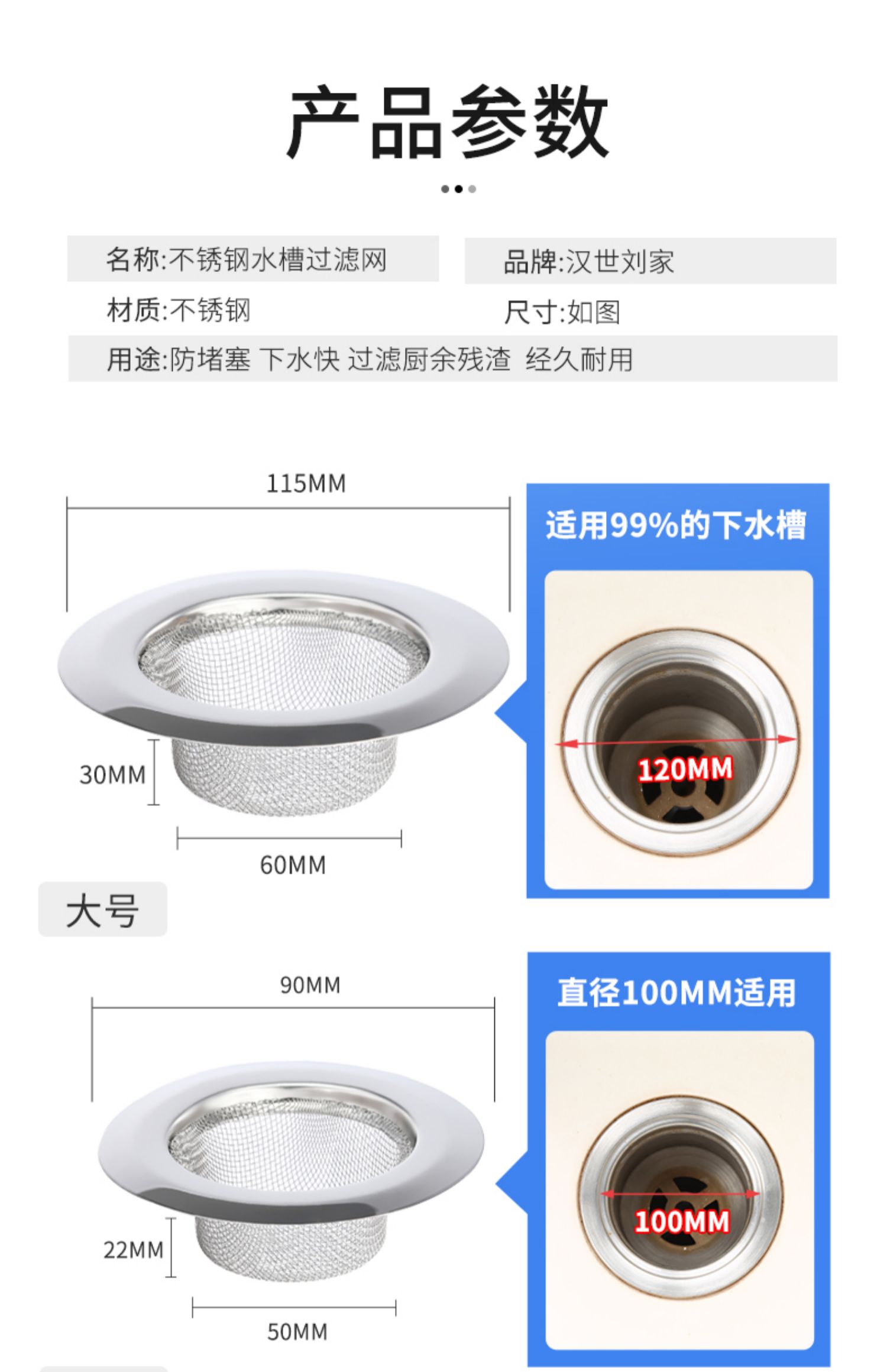 【汉世刘家!】厨房必囤的水槽防堵过滤网,密集网孔,有效过滤各种杂物,避免下水道堵塞,残渣饭粒统统过滤下来,轻松一拎,再也不怕堵塞了!【破损包赔】