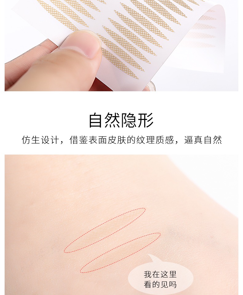 【赠镊子+Y型叉】网纹隐形双眼皮贴,接近皮肤的纹理质感,逼真自然,粘性好不翘边,防水防汗,不易脱落,雾面哑光,不影响上妆效果~轻轻贴在眼皮上,肿眼泡、单眼皮和内双立即变成深邃大眼!
