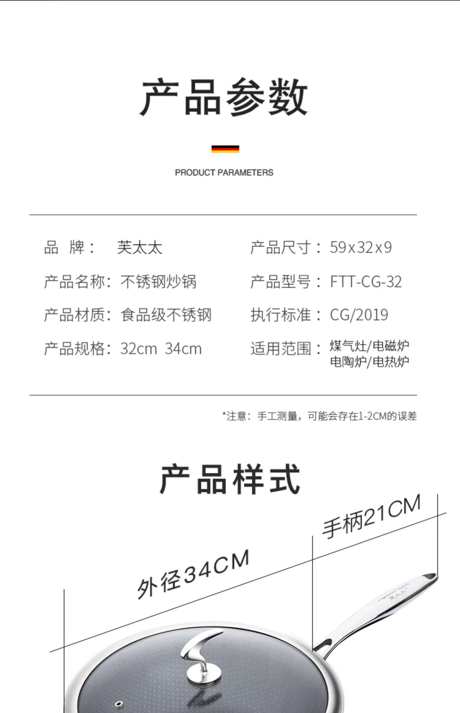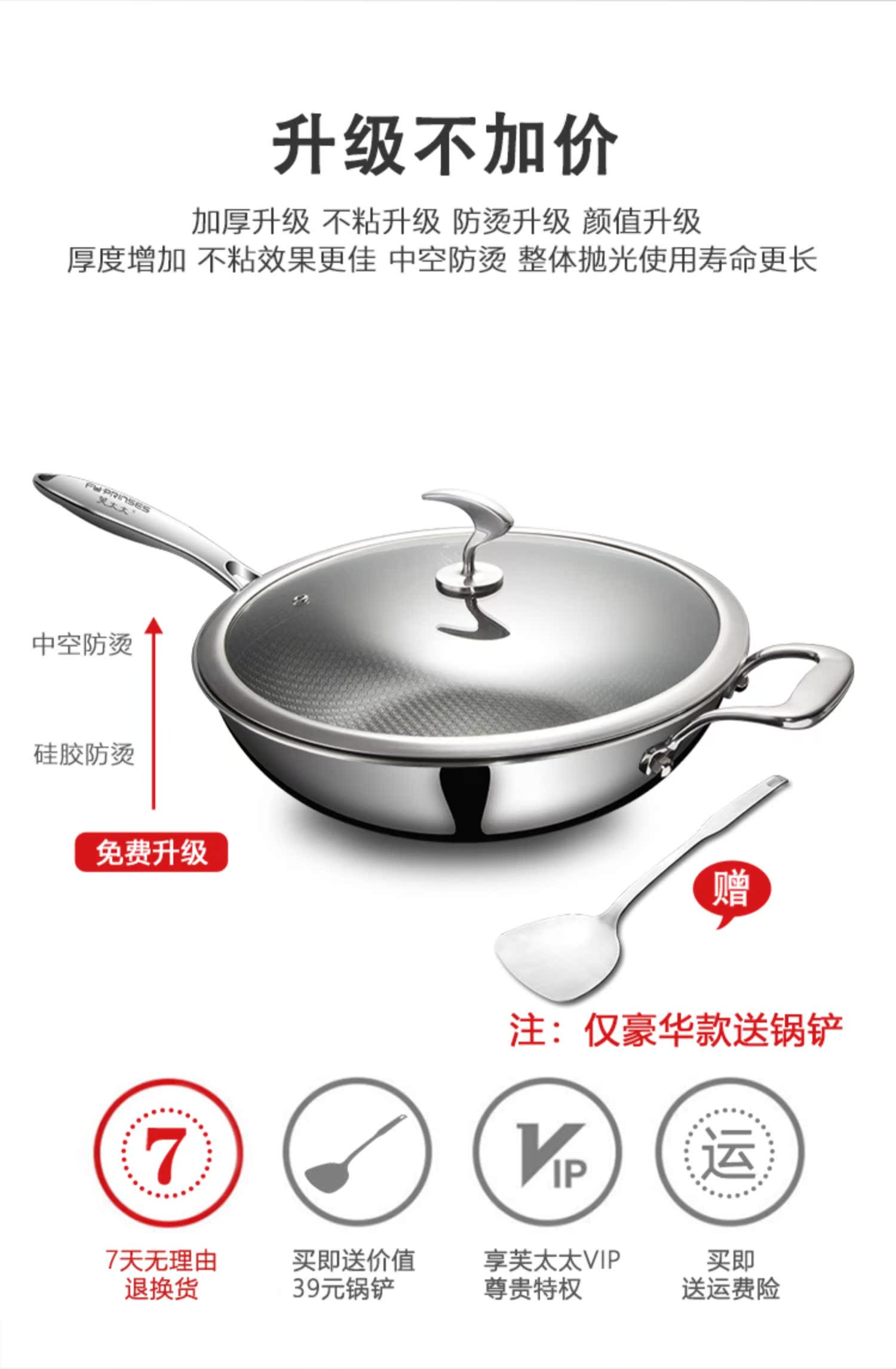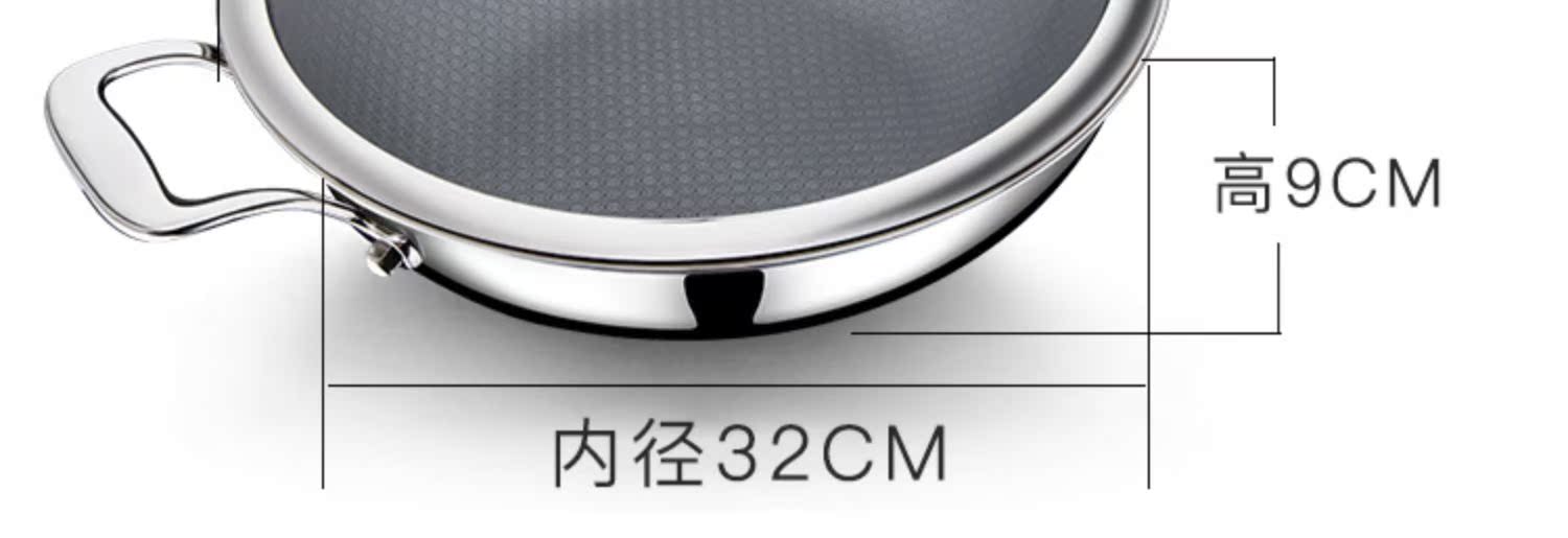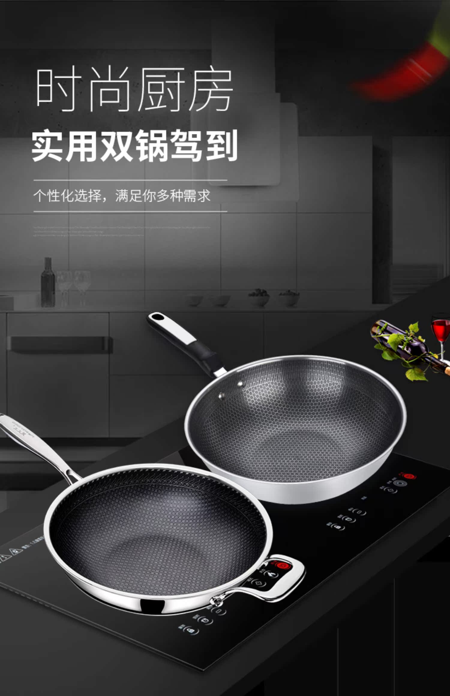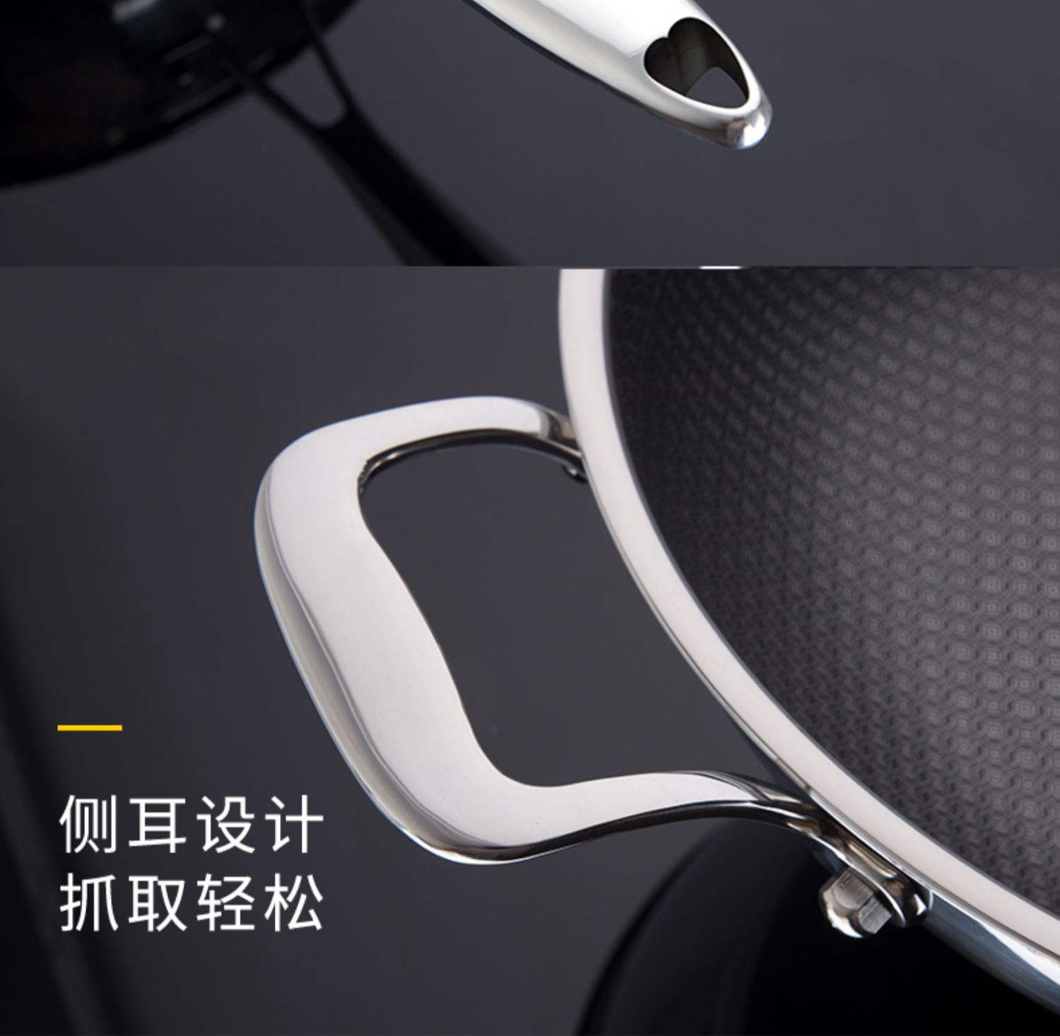源自德国技术,厨具全蜂窝保护网不粘锅,无涂层,快速匀热,无烟不粘。迅速温热,高效节能,煎炒两用。食品级304不锈钢。电磁炉燃气通用~~【赠运费险】