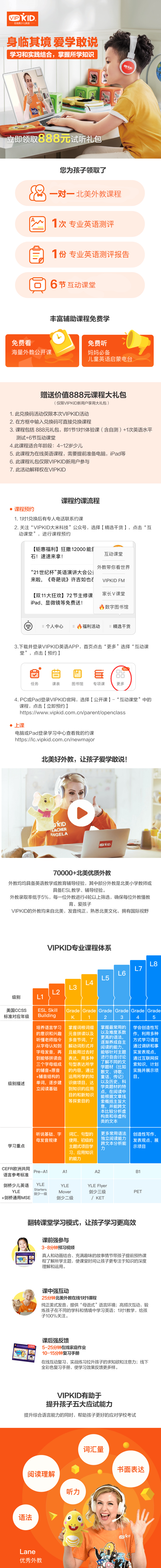 【送100本电子绘本】北美外教真人一对一体验课一节(仅限VIPKID新用户)+互动主题课6节,仅需9.9元!适合4-12岁孩子,每天25分钟,身临其境,让孩子爱学敢说!【赠运费险】