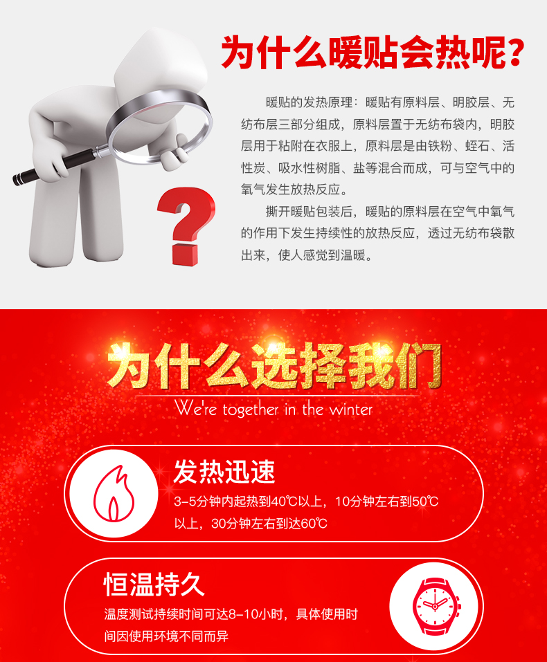 【20片装】采用高纯度铁粉,发热快,优质无纺布,持续8小时的温暖呵护,哪里不舒服贴哪里!随时贴随时暖,男女通用,这个冬天拒绝寒冷~