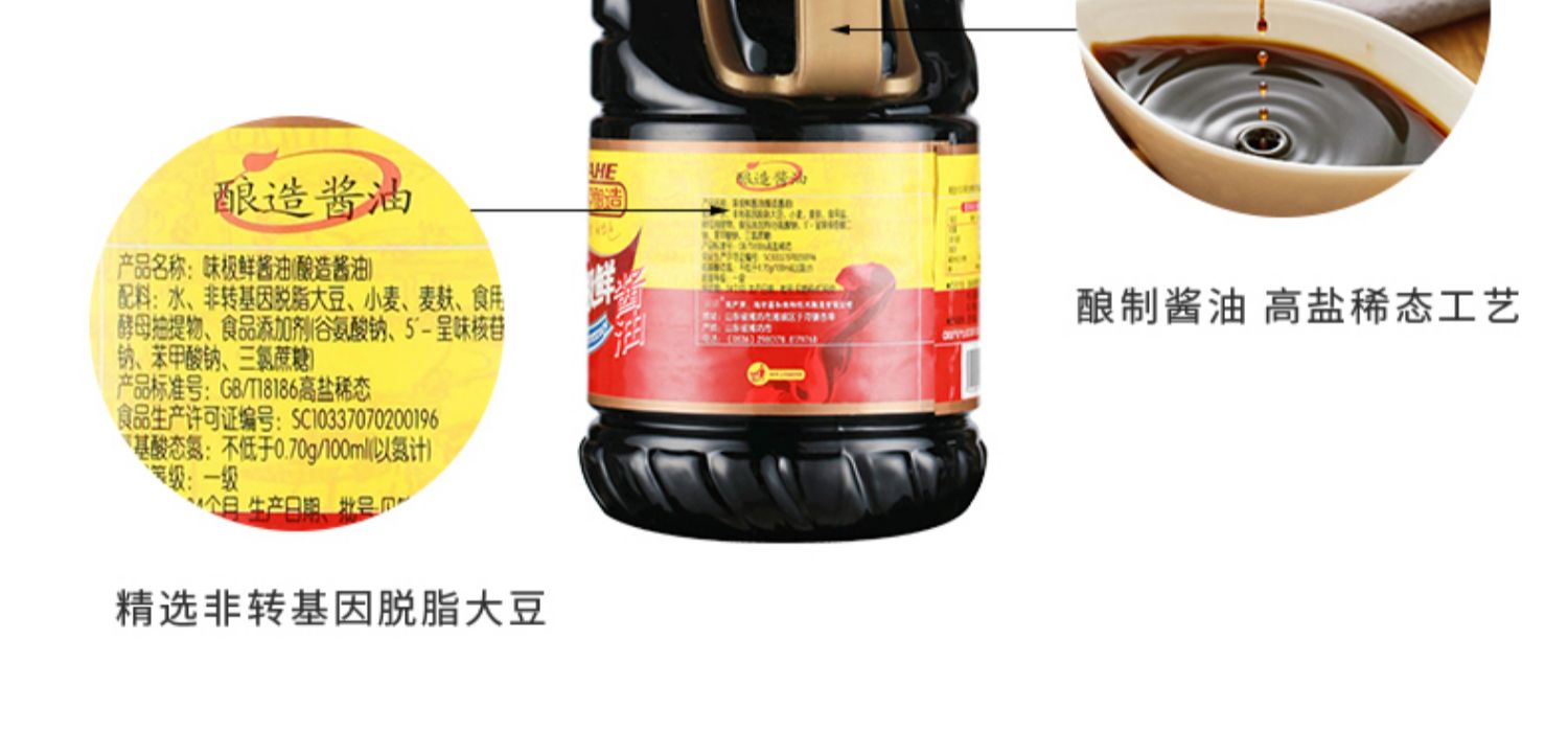 拍一单发2大瓶味极鲜和1瓶凉拌醋,民谣嘉和酱油生抽,甄选非转基因大豆,零添加防腐剂、色素、味精,经过180天足期晒制工艺,咸甜适度,酱香浓郁,给食物增添美妙爽口好滋味~