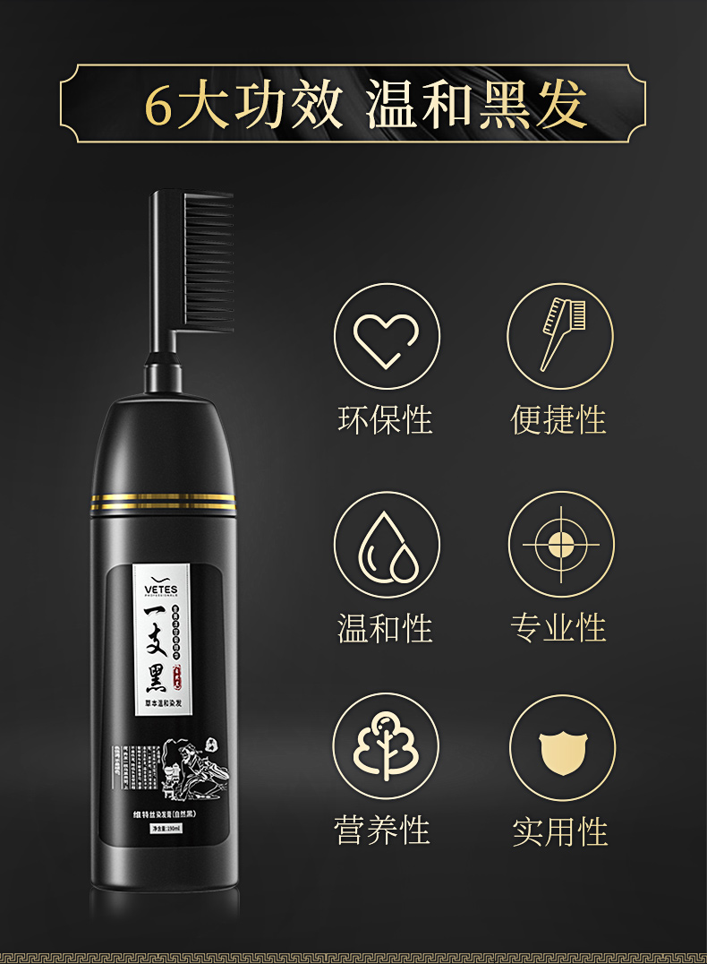 染发剂植物一洗黑洗发水纯自然黑色染发膏天然无刺激一支黑绿色配方,只黑头发不黑头皮,健康黑发加量升级版