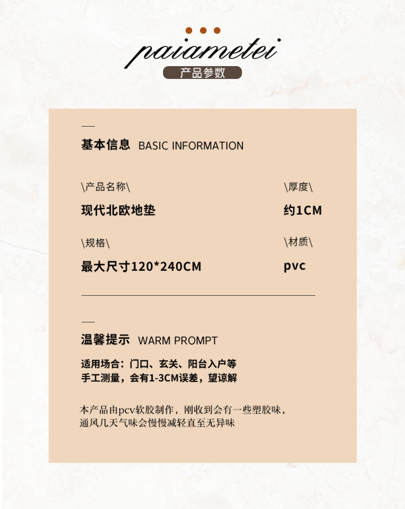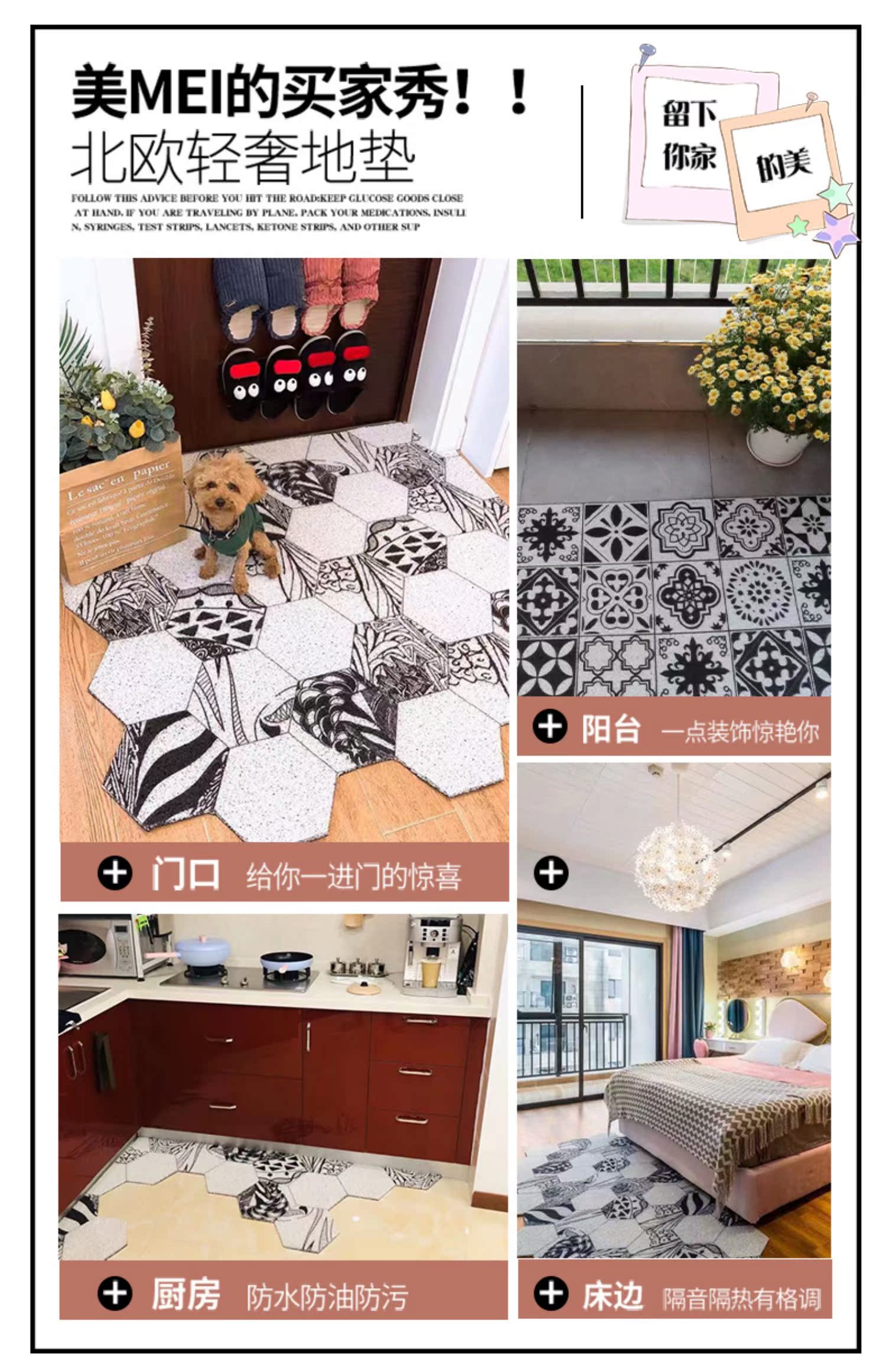 清新北欧风,环保印染,无甲醛,不含荧光剂,亲肤柔软,出众品质,适合品味高尚人群,使用寿命长,防潮,防滑,防静电,耐磨,容易清理,可任意裁剪,给家人一份安全保障。