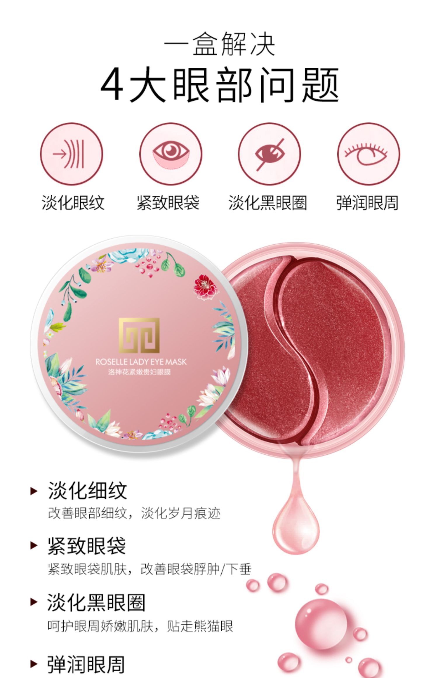 深层补水保湿,淡化黑眼圈,深入修护眼部问题,告别熊猫眼,一贴多用,轻轻一敷,还你焕彩美眸!【赠运费险】