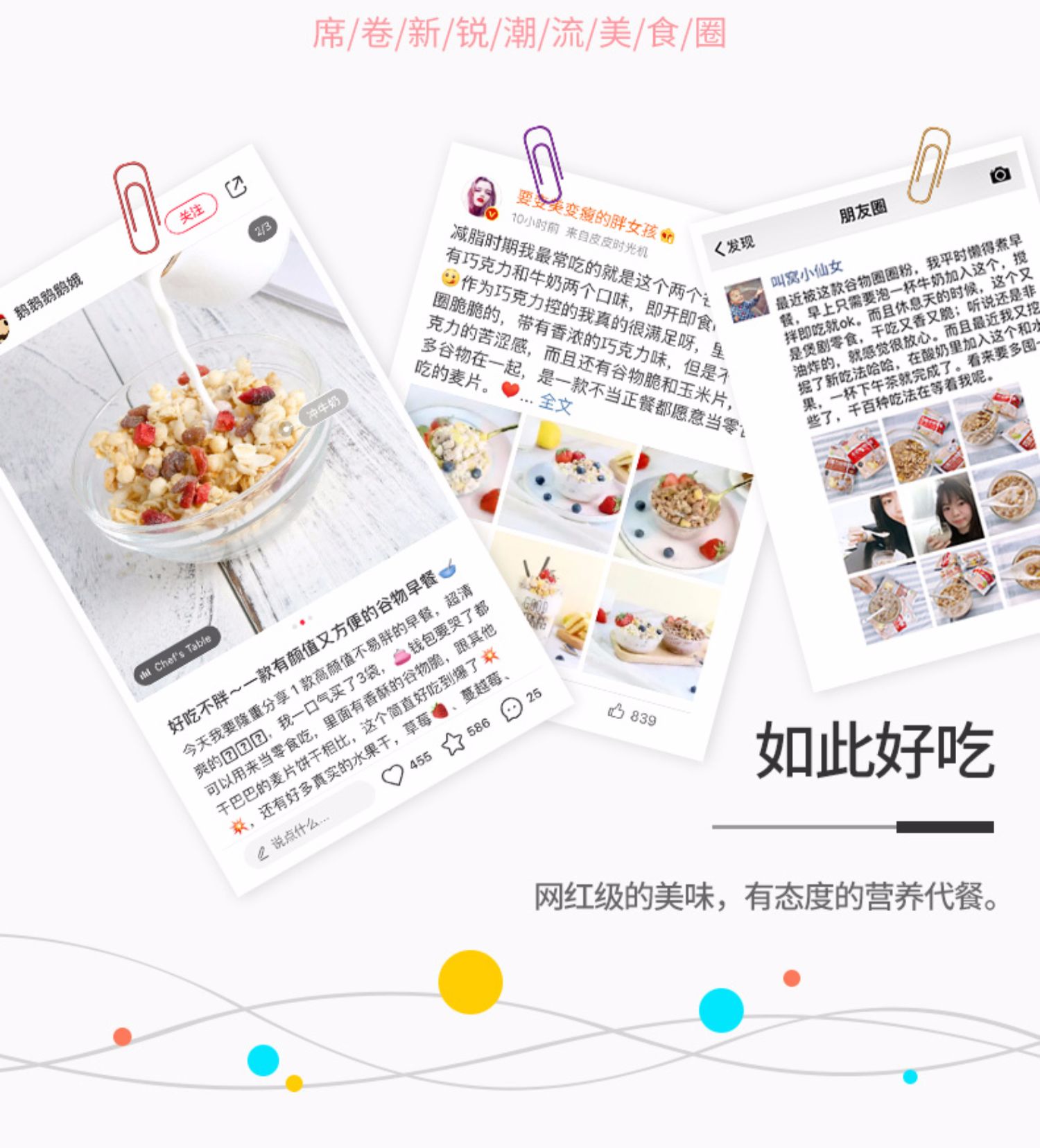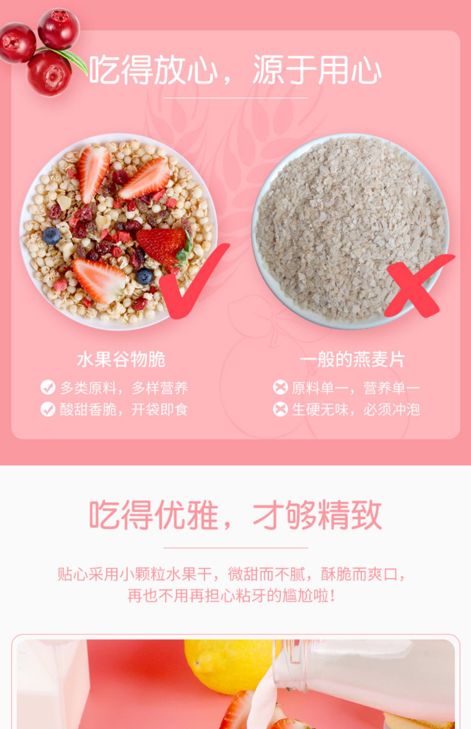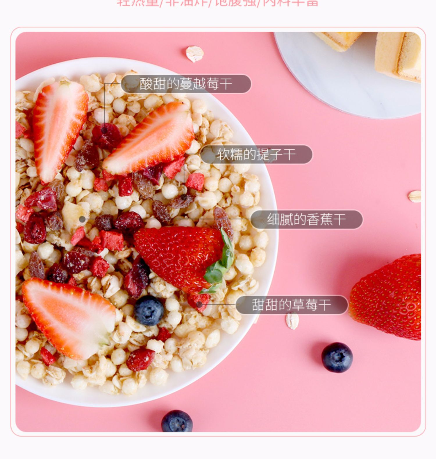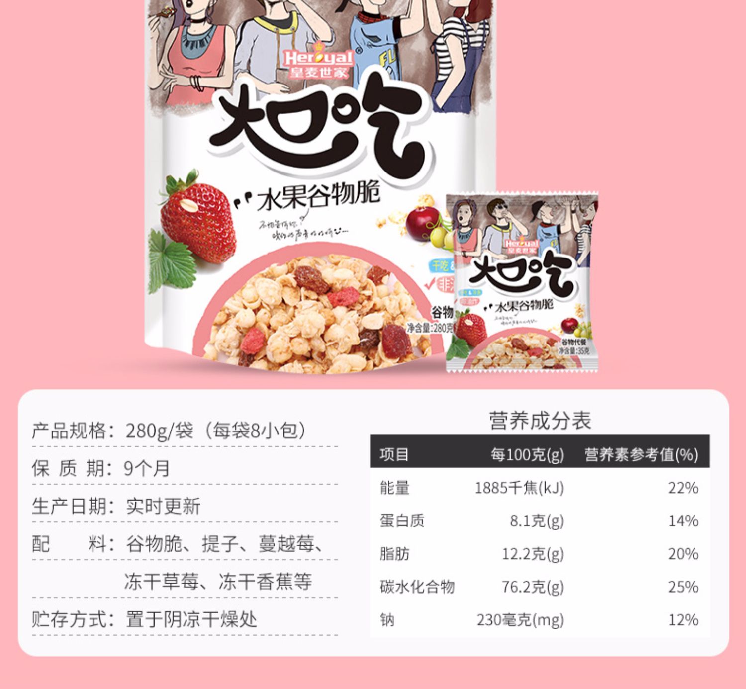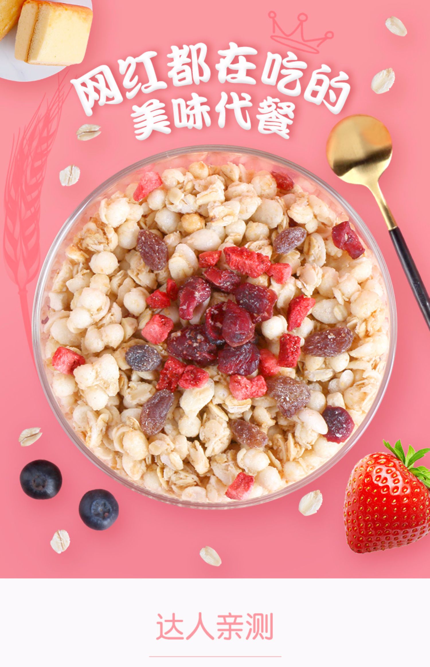 拍2份!拍2份!第二件0元。网红美味都在这。网红谷物脆4款任选。采用烘烤工艺,避免油炸油腻的高热量。更大限度地保留了谷物脆的营养。