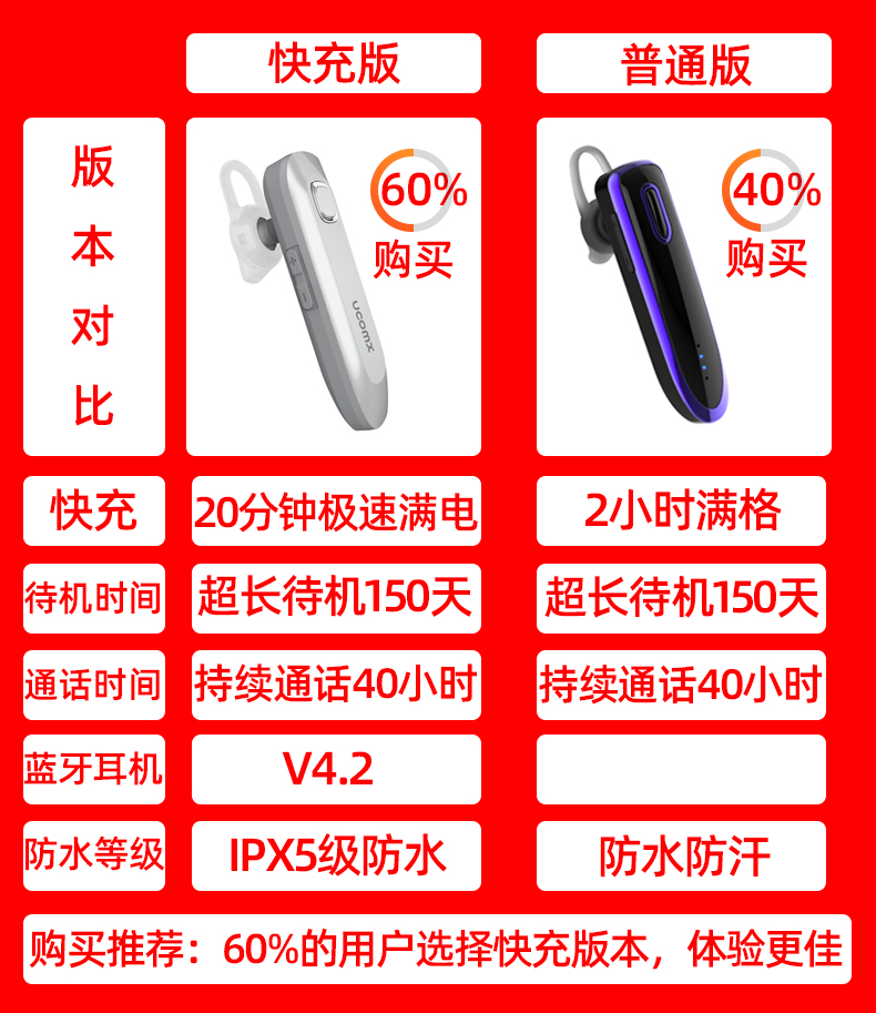 蓝牙4.2版本,充电5分钟可用5小时!轻盈小巧,长时间佩戴也耳痛,送原装充电线,收纳盒,耳挂~【赠运费险】