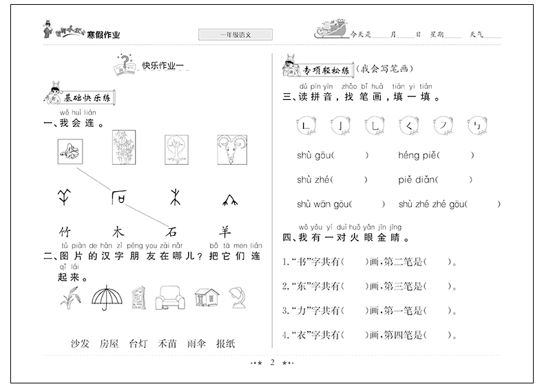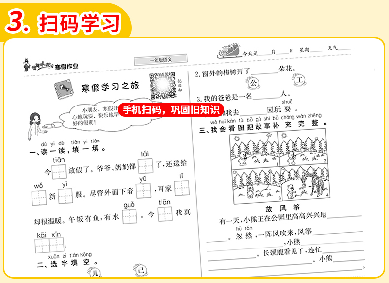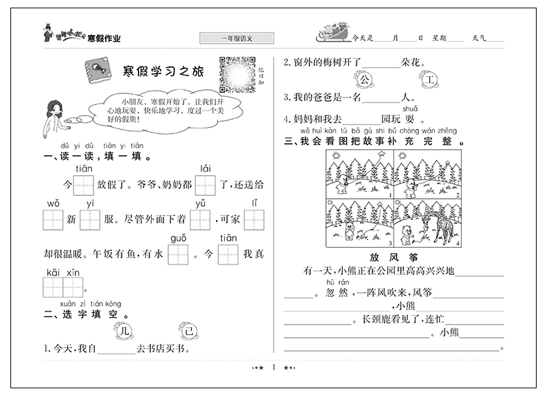 【全国通用,买1得4】2020春新版黄冈小状元寒假作业一年级语文数学全2册,提高学习效率掌握学习方法,正版授权,清晰印刷!