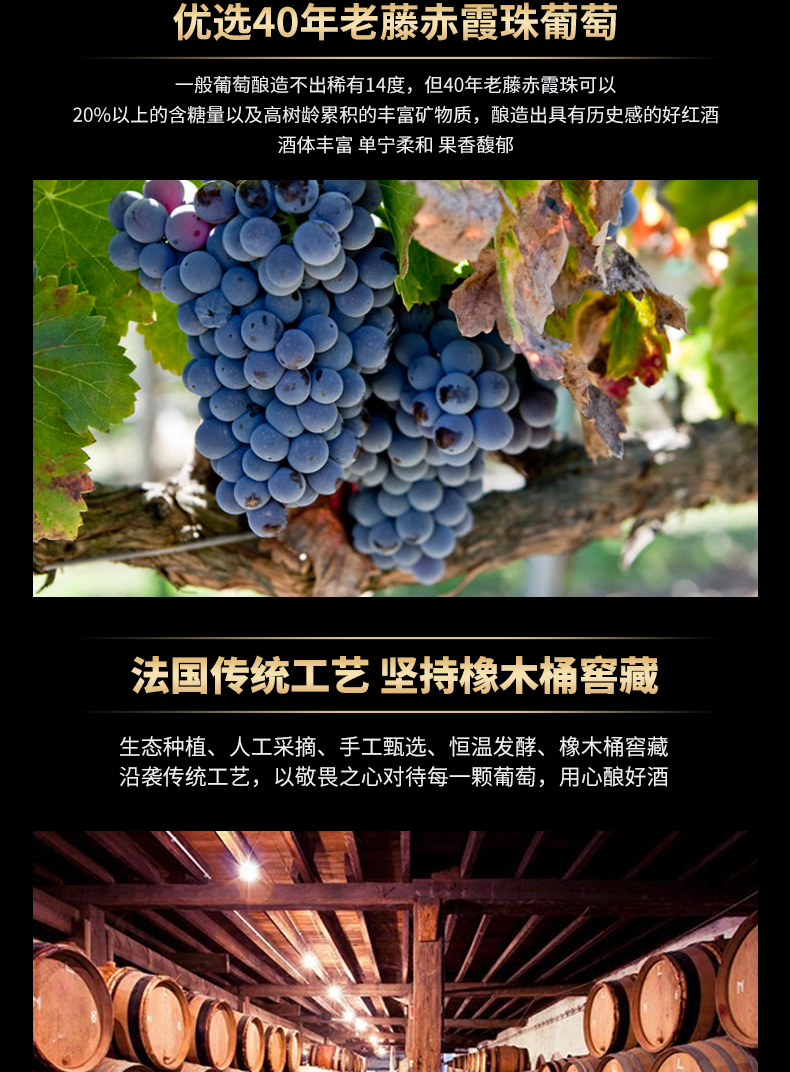 【2瓶礼盒装,法国原瓶进口】优选赤霞珠,稀有14度果香馥郁,柔顺易入口,品质保证,40年老藤葡萄树,酸度低,酿造细腻,原汁原味,酒香微妙,口感顺滑~