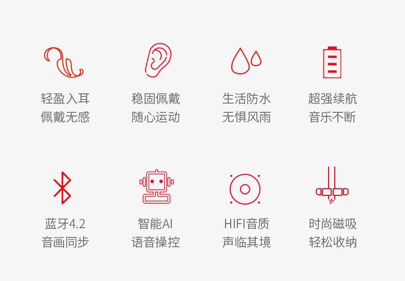 蓝牙4.2性能卓越,XP4级防水,6D立体环绕,智能AI语音声控,15°斜入耳,运动不掉,尽显奢饰黑科技蓝牙风范~【赠运费险】