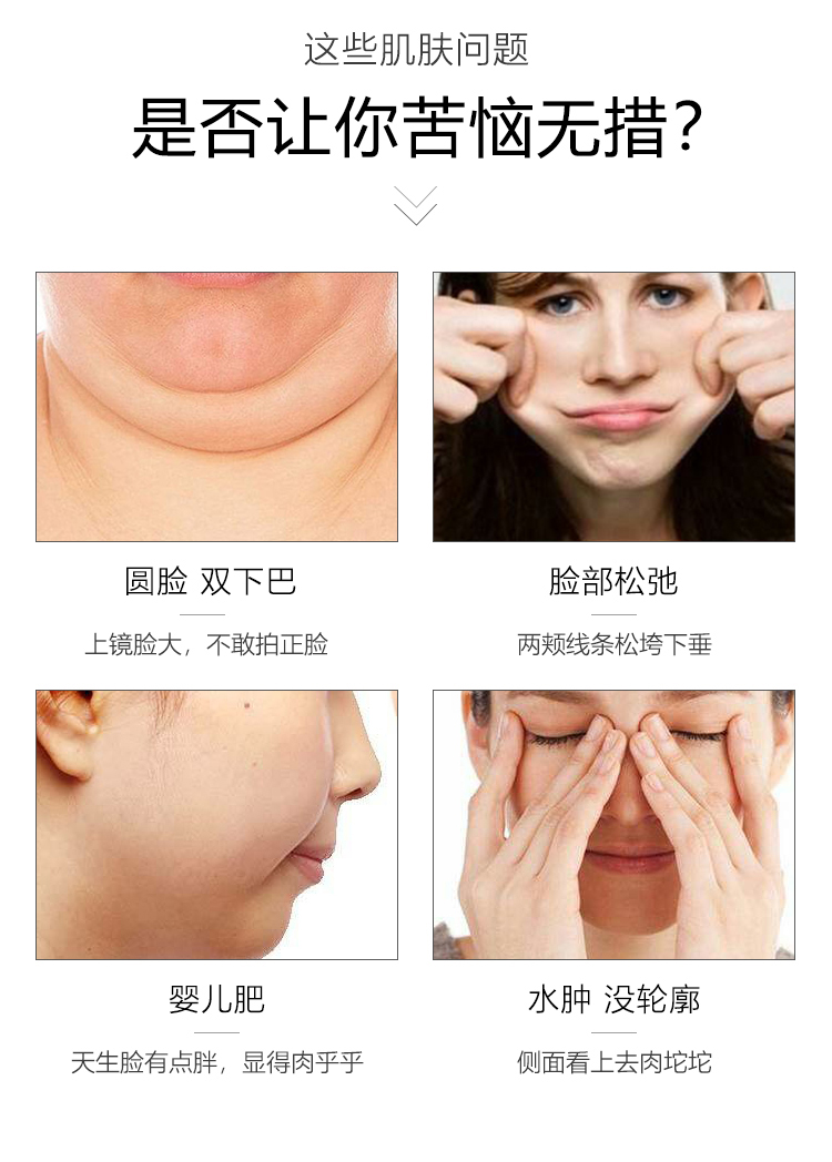 网红强力推荐,能够有效分解脂肪,适合肉肉脸、双下巴、婴儿肥等,纯植物萃取,无添加,男生女生孕妇宝妈上班族皆可放心使用,不用吃药打针手术,轻轻松松打造V脸型!