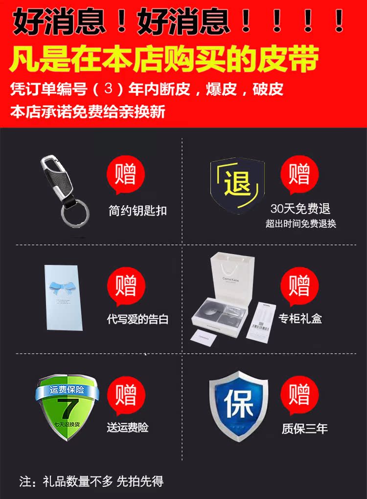 精选优质材质,优质合金扣头,防滑耐用,软面带身,大气有面有档次,精品潮男时尚皮带