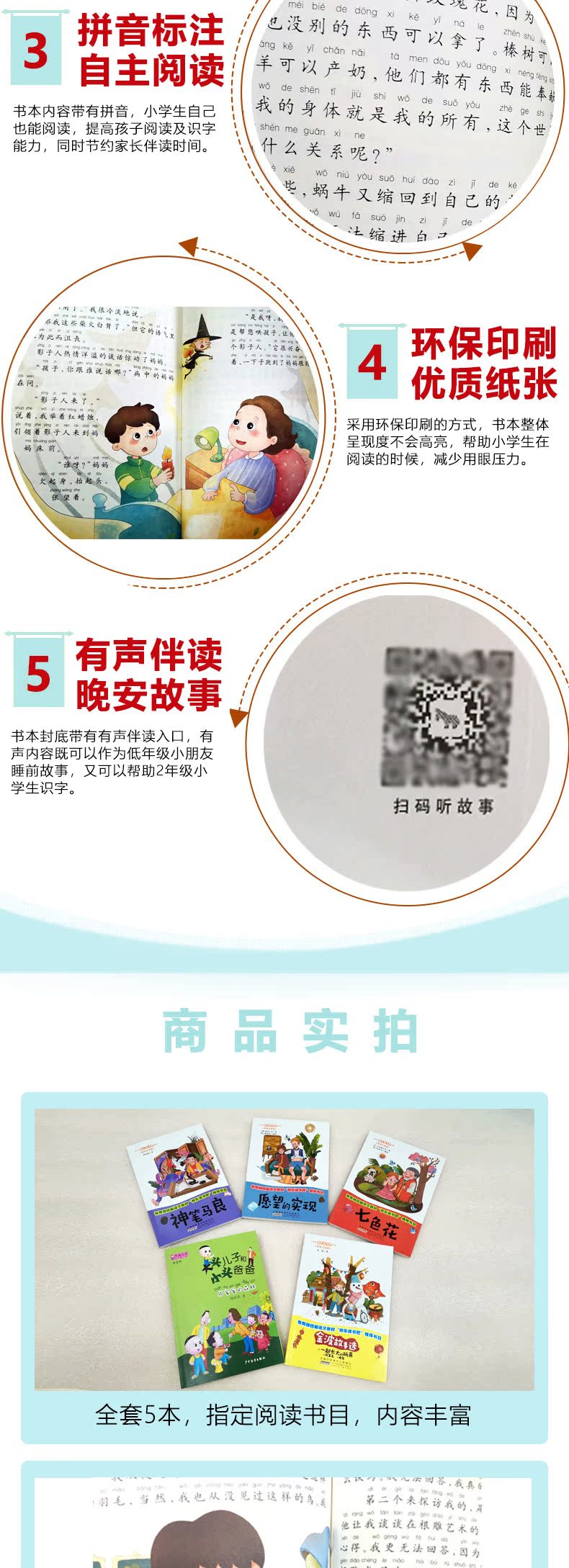 教育部统编,新华书店正版!护眼大字注音版,精美插图,有声伴读,共5本,书店要26元!