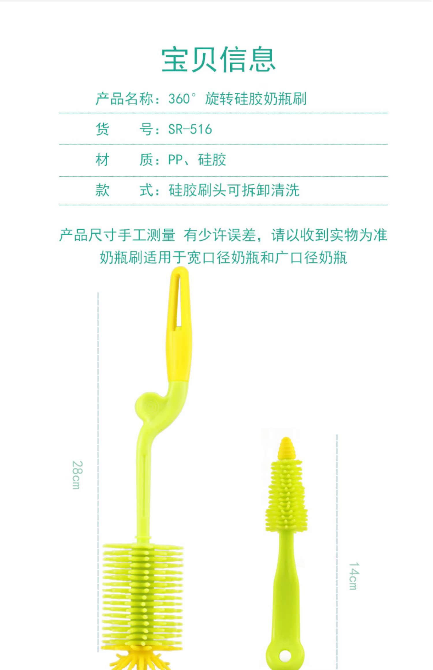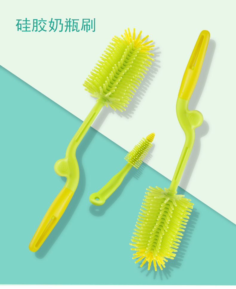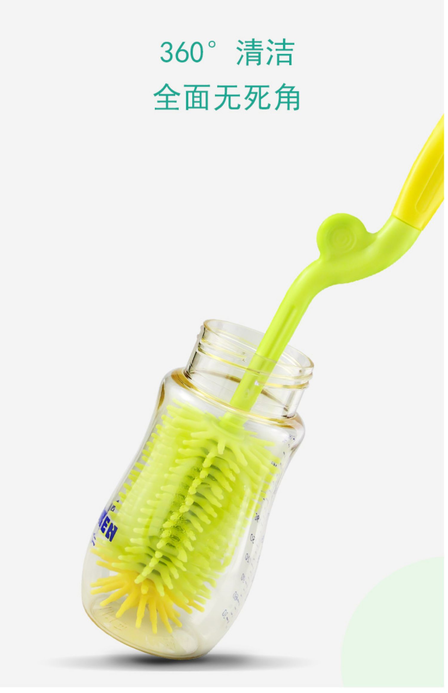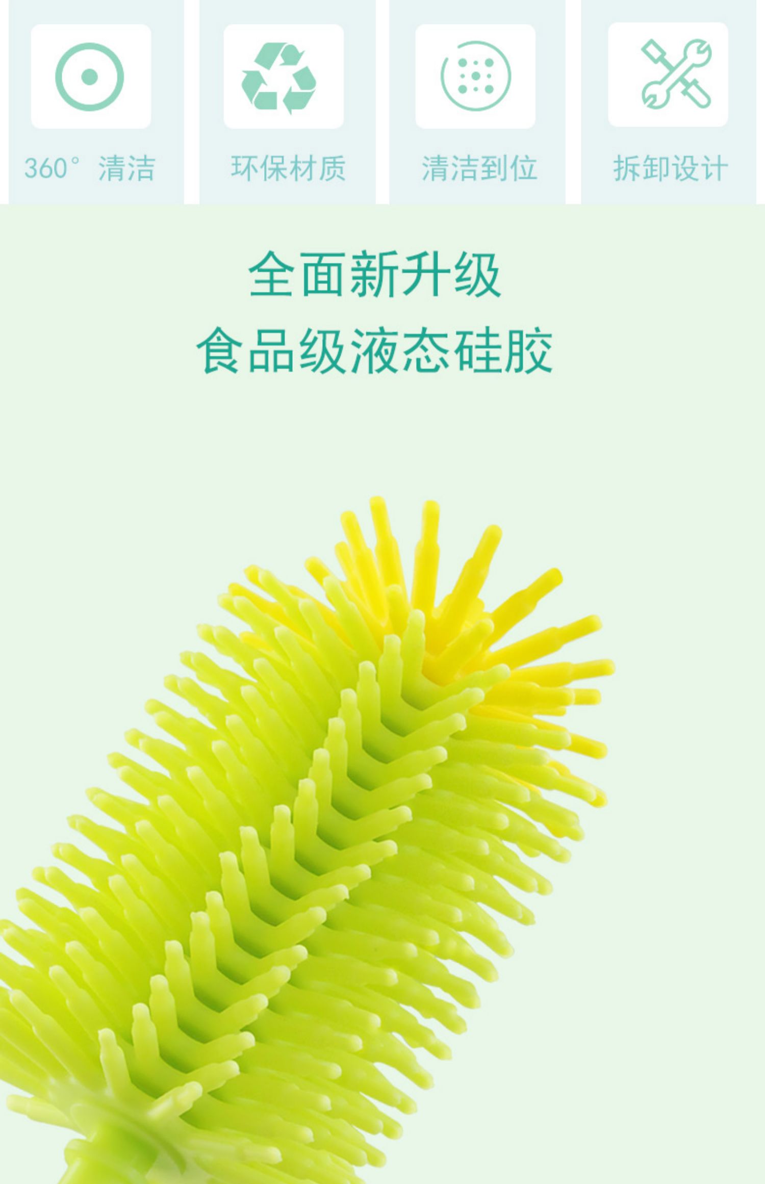 硅胶奶瓶刷360度旋转婴儿奶嘴刷,吸管刷组合洗奶瓶刷子,清洁刷套装,液态食品级硅胶,刷毛更细,360度旋转手柄,清洁更干净。